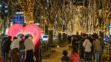 交差点の北西側にある「せんだいメディアテーク」の上層階から見てみました。現在の歩車分離式の信号のままでも、中央分離帯の遊歩道を行き来できるようになりますが、歩行者としては斜め横断が認められるような形が理想なので、スクランブル交差点になって欲しいものですね。