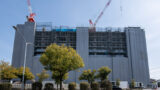 現場に掲示されている「今週の作業予定」には、現在の作業は「地下、上屋解体」と書かれていて、まだ解体作業は続いているようでした。撮影した時は瓦礫などを搬出していて、トラックが頻繁に出入りしていました。