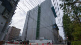 その東側にも新しいマンションの建設現場がありました。タカラレーベンとマリモの共同プロジェクト「レーベン木町通 THE MAISON」です。現在、3階部分を組み立てていました。