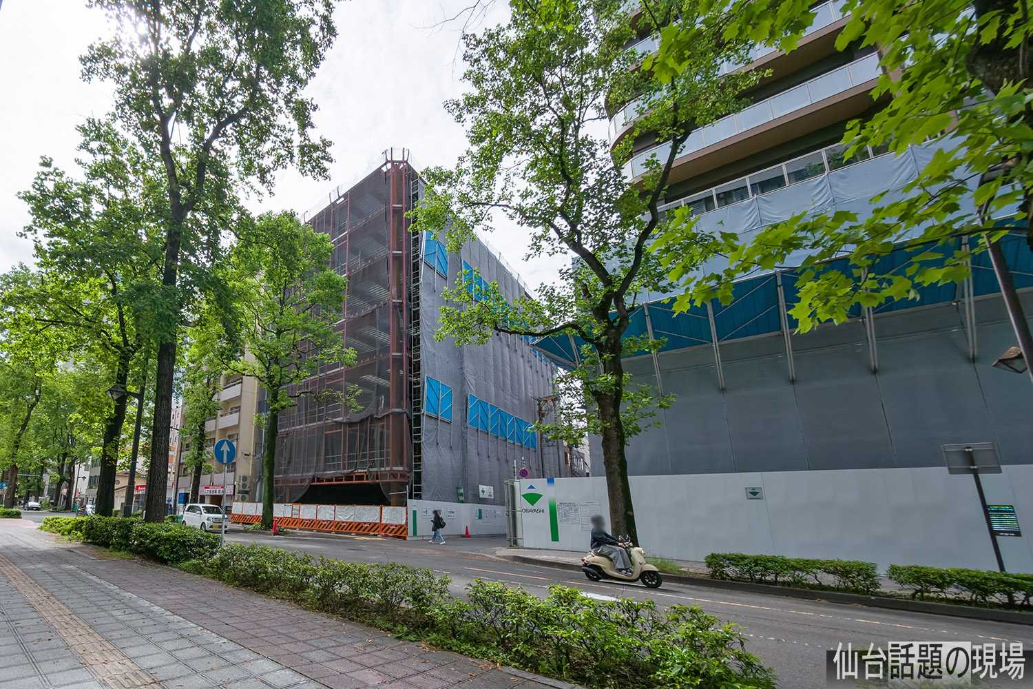 パークホームズ仙台中央の西側でも、新しい建物が組み上がって来ていました。「ニーズトラストビルヂング.S-Ⅱ中央」が解体された跡地で建設中の「(仮称)仙台青葉区PJ」です。