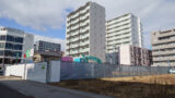 今回は前回に続いて、JR仙台駅の北東側の元寺小路福室線沿いと近隣で進む建設工事の状況を見ていきたいと思います。前回の「ノブレス仙台」の南側(写真の左側)のマンションから見ていきます。