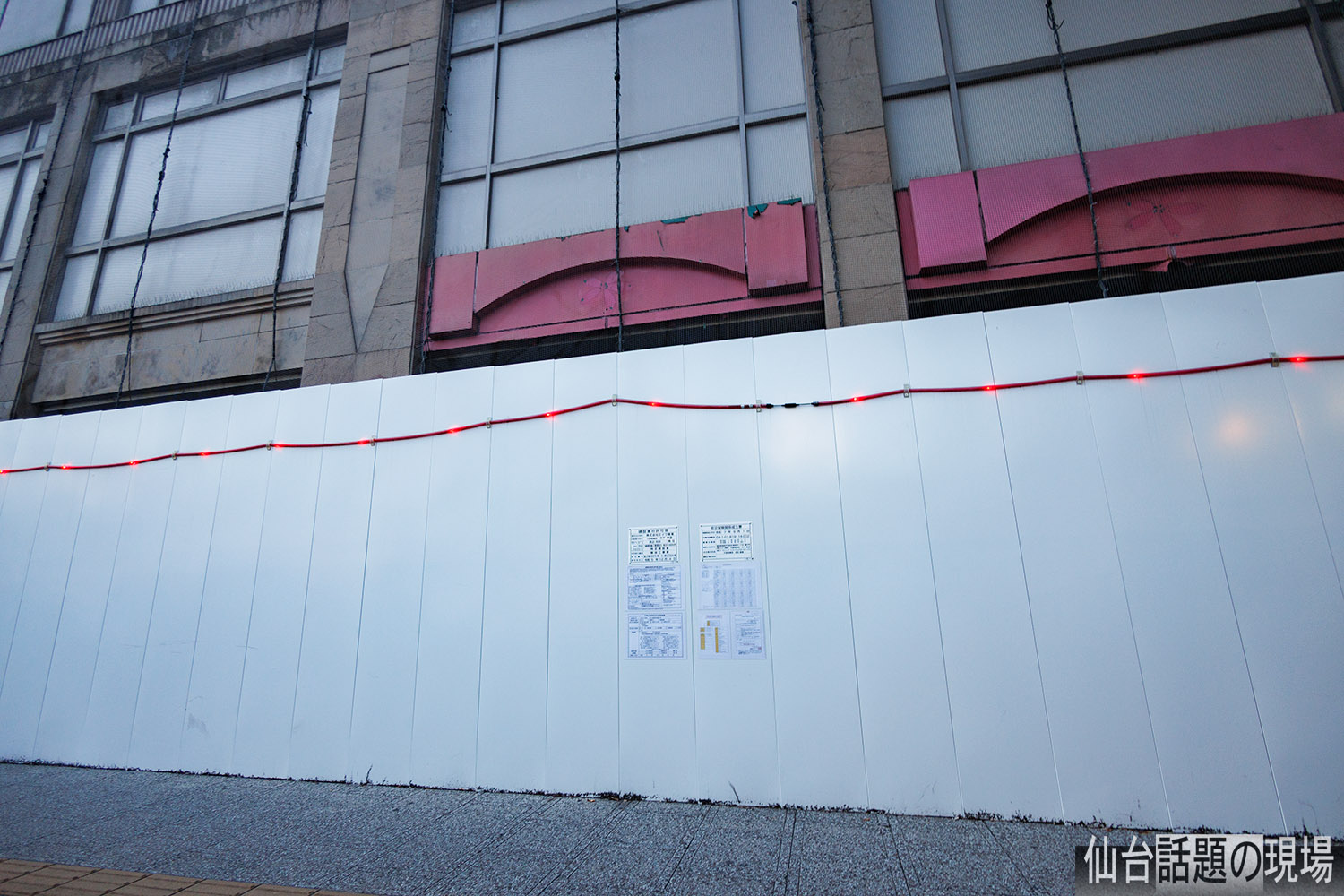 日が暮れかかった夕方、旧さくら野百貨店の前を通りかかったら、解体工事に関するお知らせが掲示されていました。
