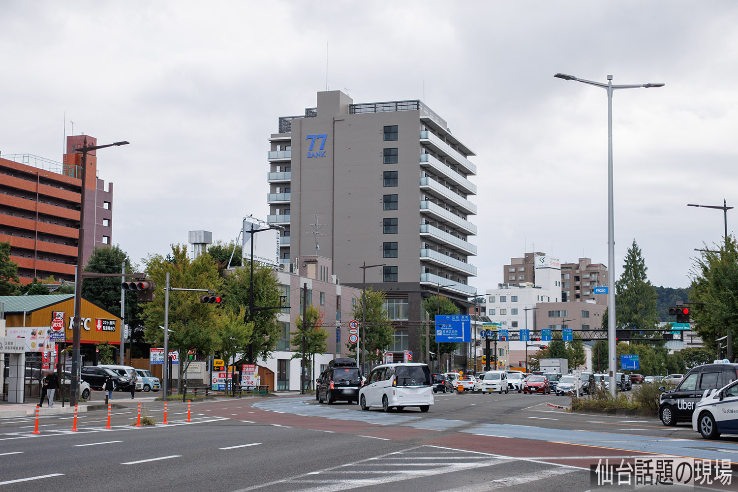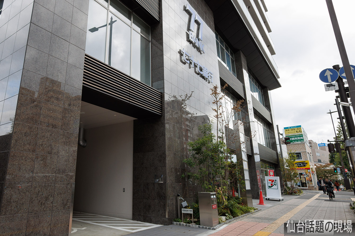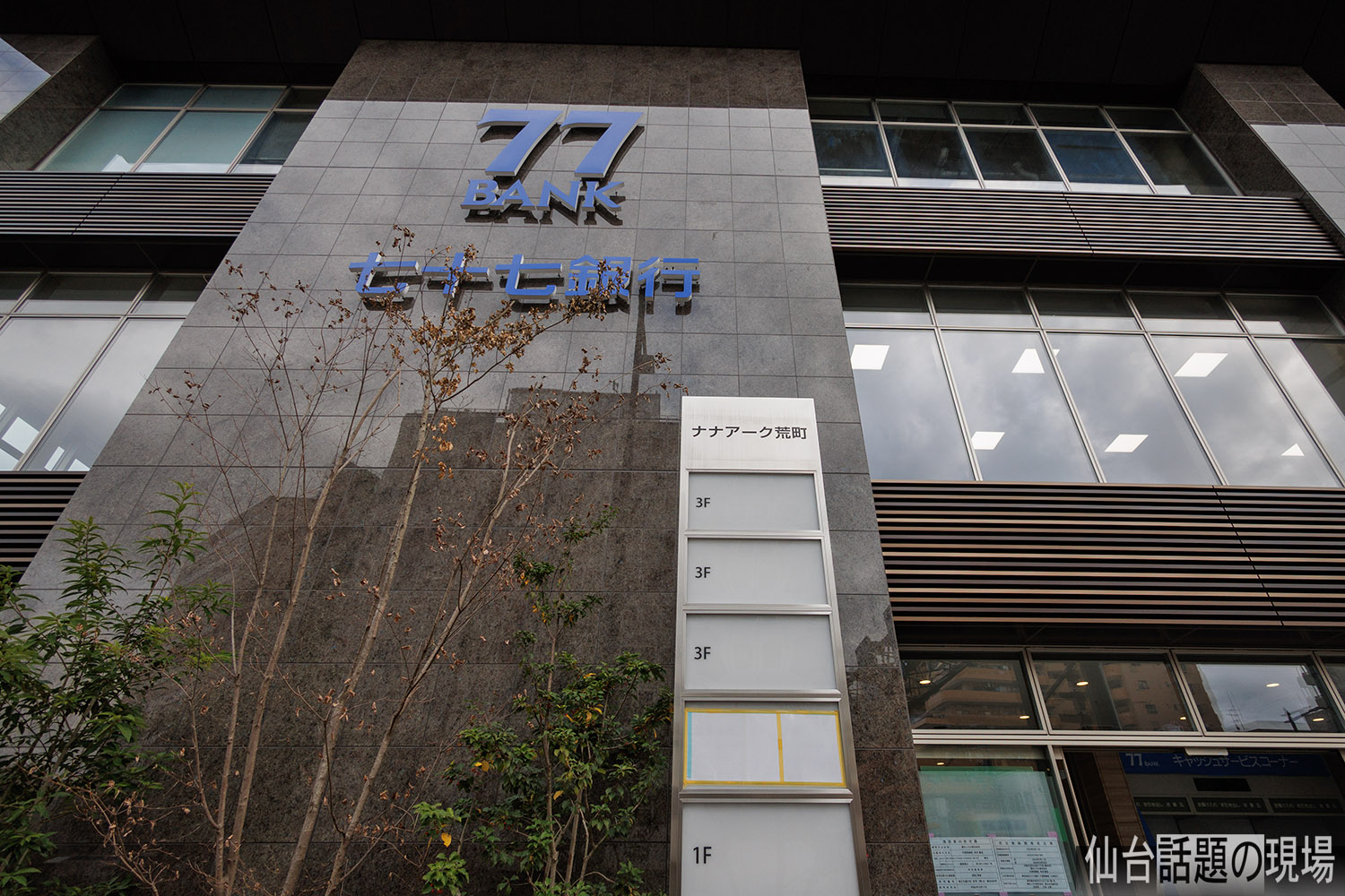 ビルの看板の上部には「ナナアーク荒町」と書かれていましたが、ビル名というよりも4階から上の賃貸マンション部分の名称のようです。ビル自体は「七十七銀行荒町支店」と、以前と同じように呼ばれるんじゃないでしょうかね。