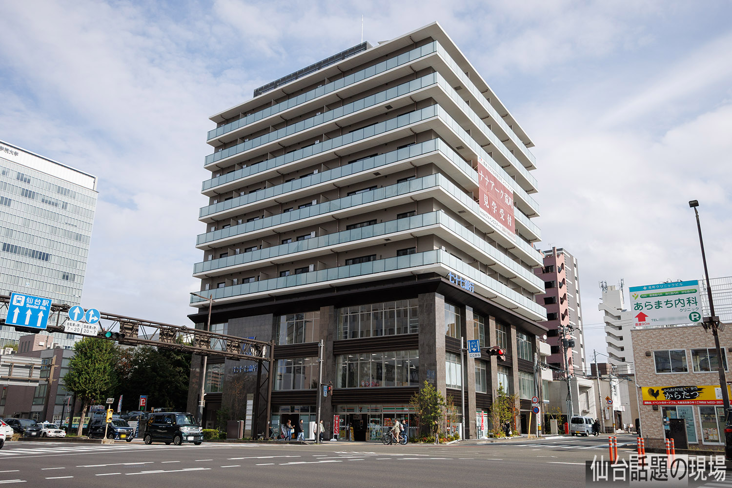 1階は銀行ATMの他にコンビニと薬局、2階は七十七銀行荒町支店兼八木山支店、3階には医療系のテナントが入居し、4階から10階は積水ハウスが運営する56戸の賃貸マンションになります。