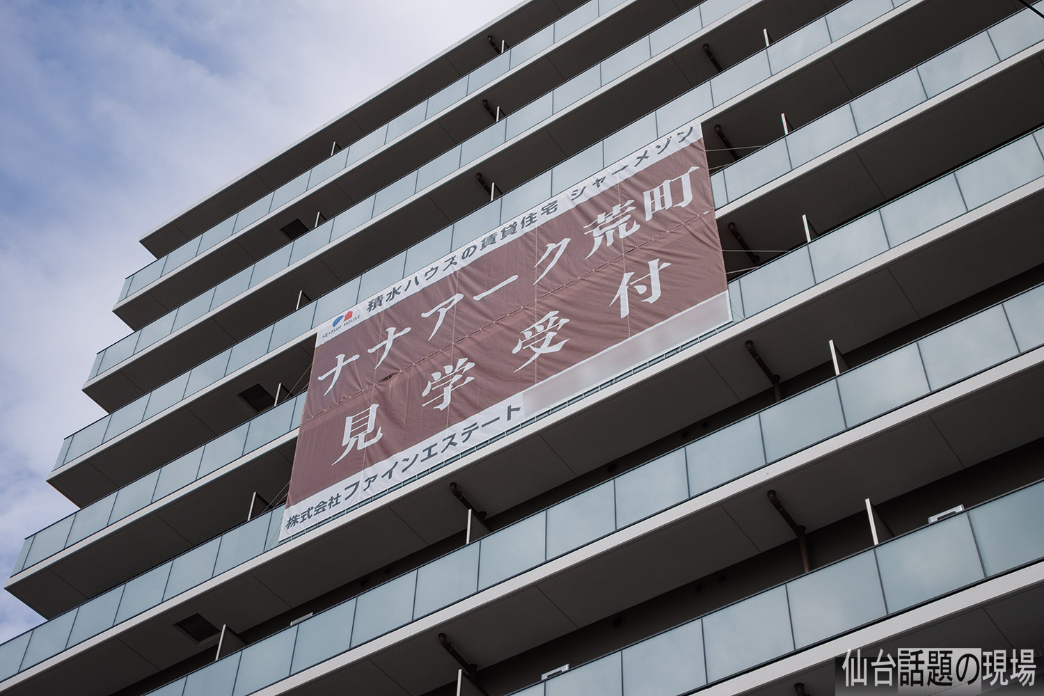 賃貸マンション部分には「ナナアーク荒町 見学受付」と書かれていました。