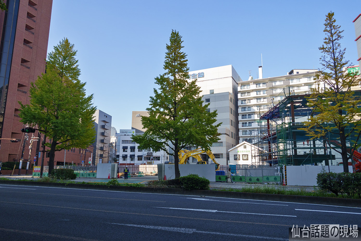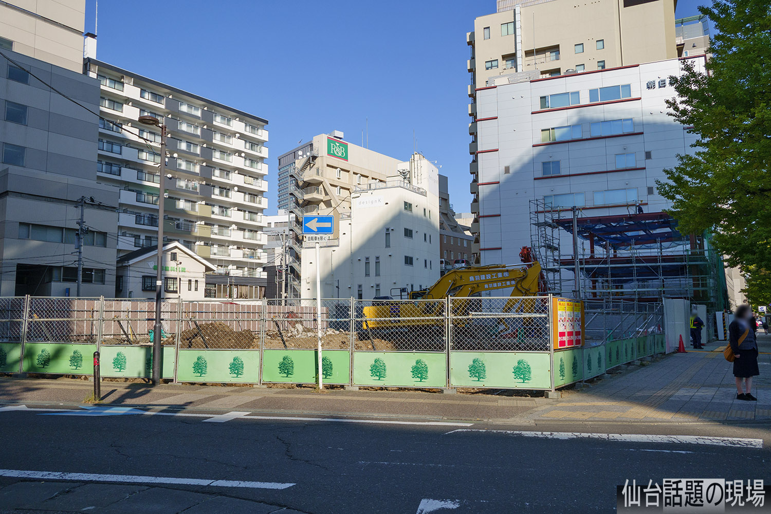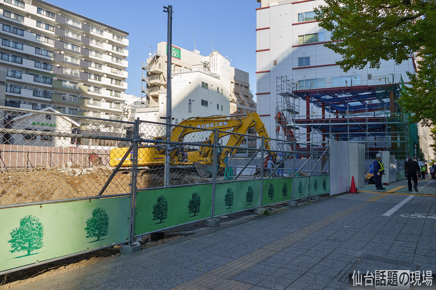 2件の建設工事現場が並んでいるのは、広瀬通と東三番丁通の交差点、北東側の場所で「江陽グランドホテル」の東側です。