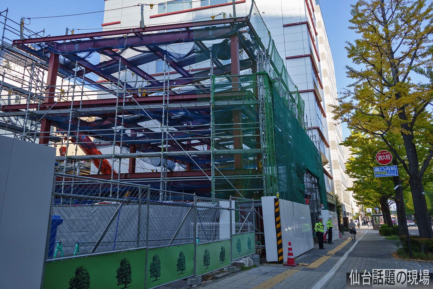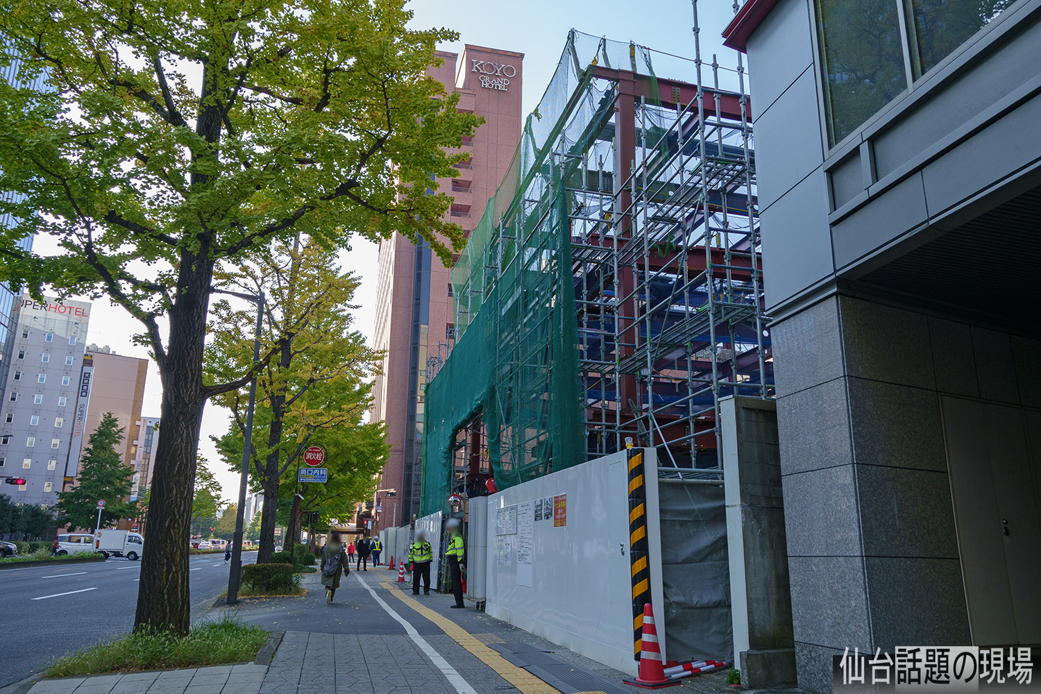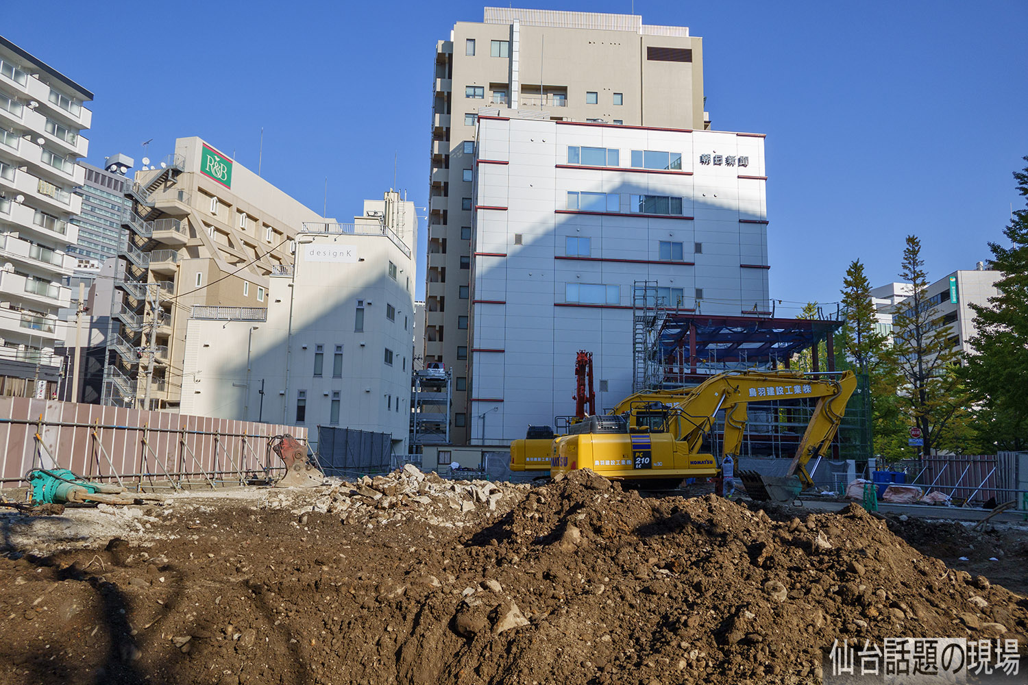 2件の建設工事現場が並んでいるのは、広瀬通と東三番丁通の交差点、北東側の場所で「江陽グランドホテル」の東側です。