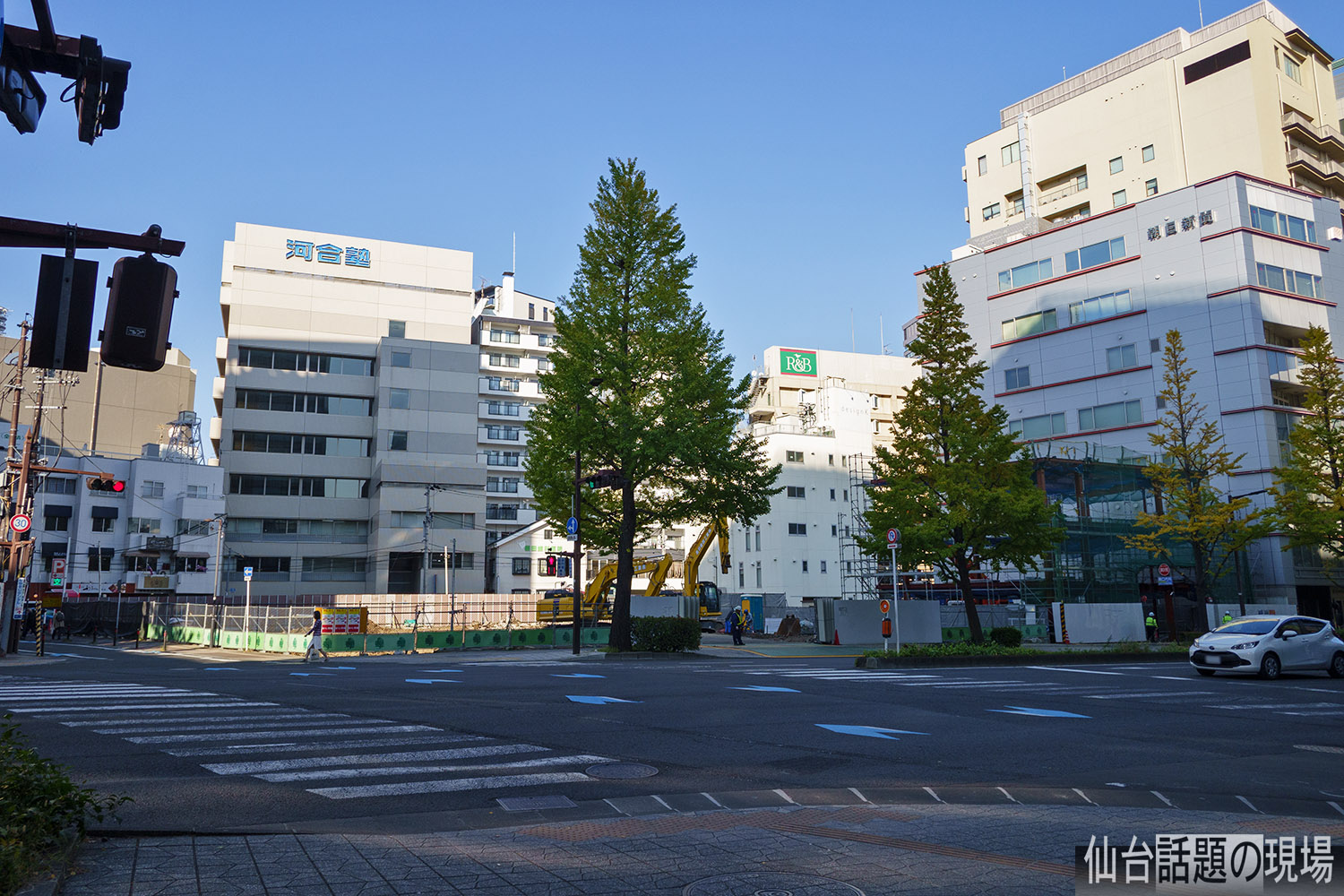 広瀬通と東三番丁通の交差点の角にあった宝くじ売り場が、ここから180mほど北西側の場所に移転していました。ここもアパホテルの建設予定地に入っているんでしょうね。