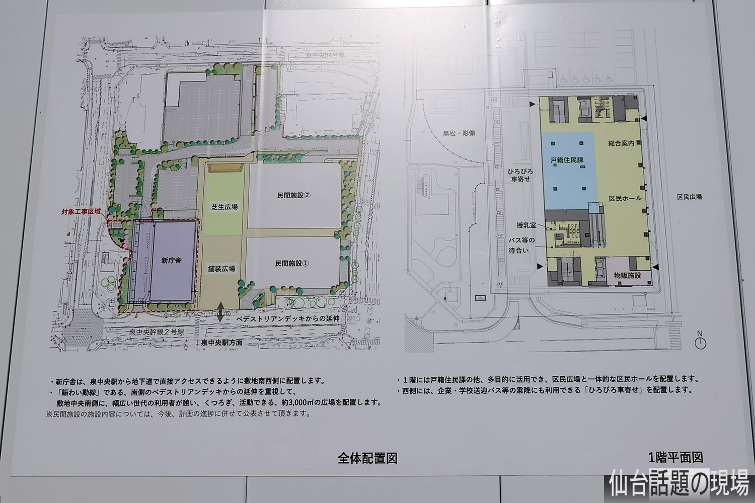 泉区役所の東側の敷地には、民間のビルを建設することが当初から計画されていましたが、現場に「建築計画のお知らせ」が掲示されました。