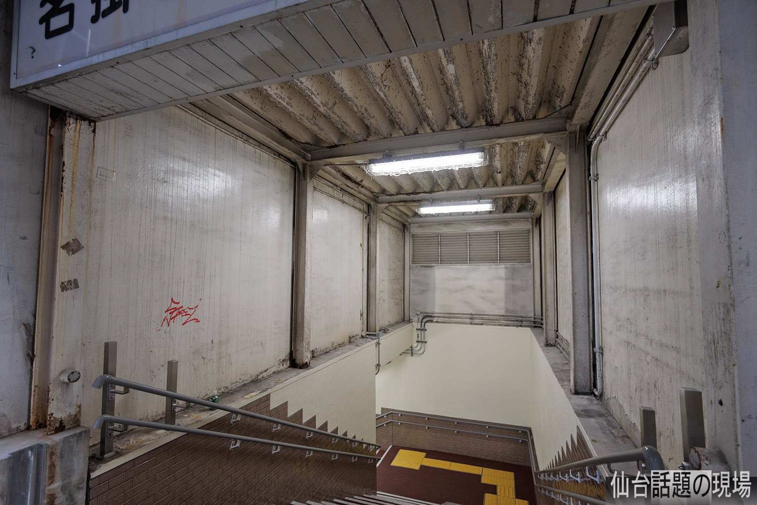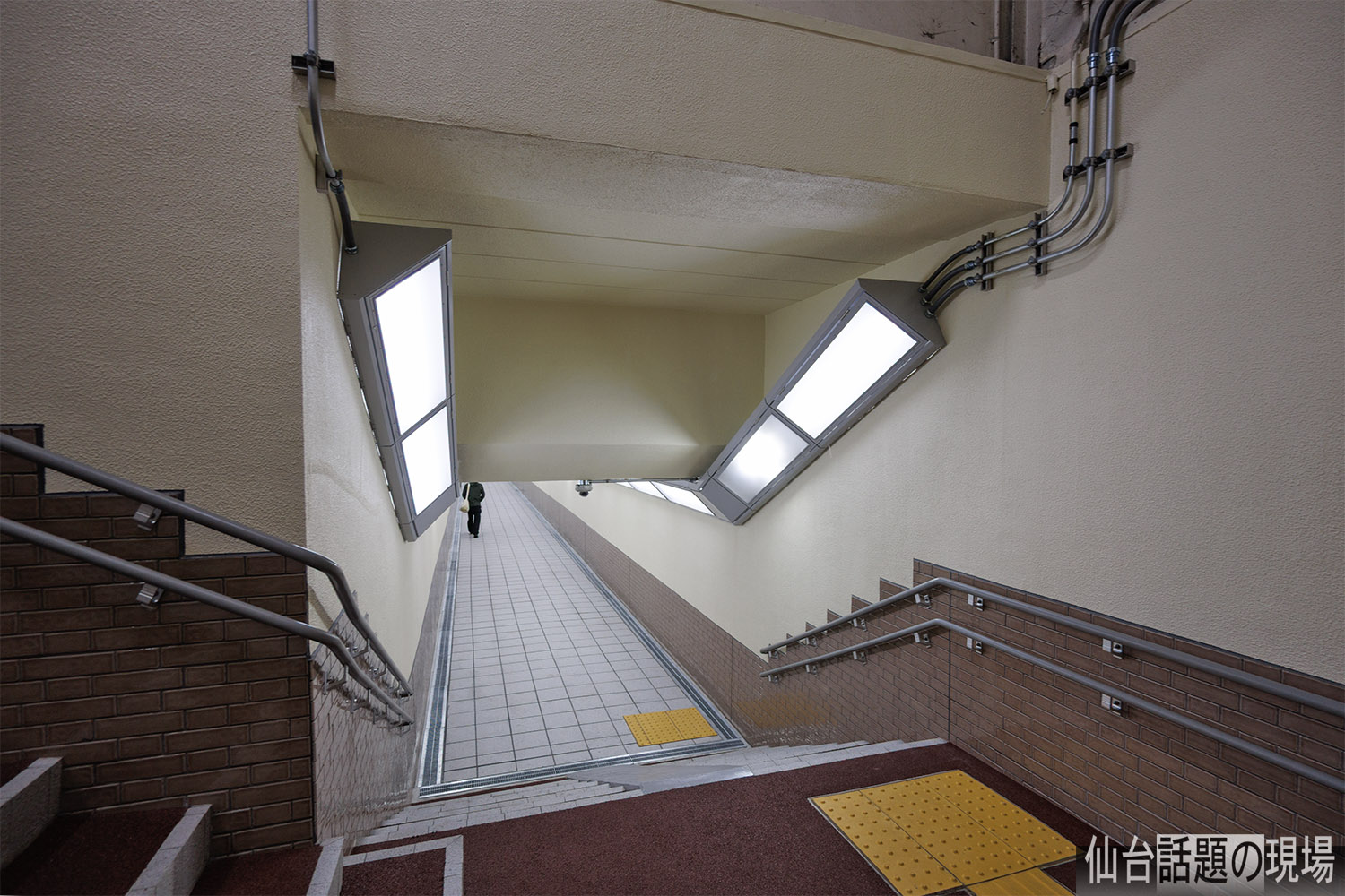 仙台駅の北側で駅の東と西を結ぶ「名掛丁地下道」の修繕工事が終了して再び通れるようなりました。ハピナ名掛丁の方から東へ向かって行ってみましょう。
