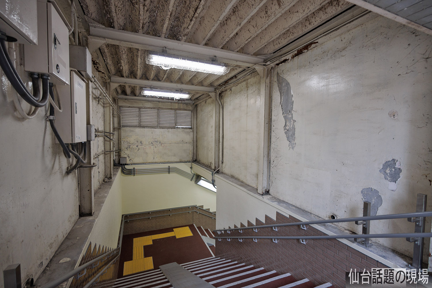 こちら側も階段の上の方は修繕されていない状態で、綺麗になった地下道との差を感じてしまいます。