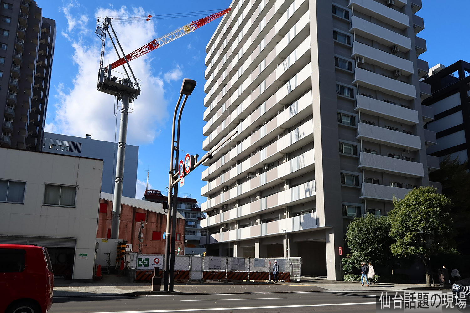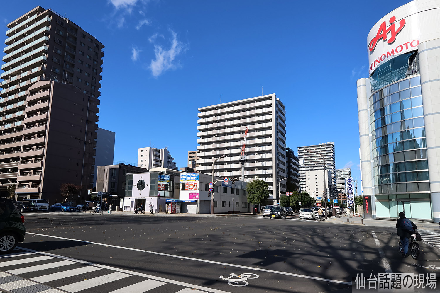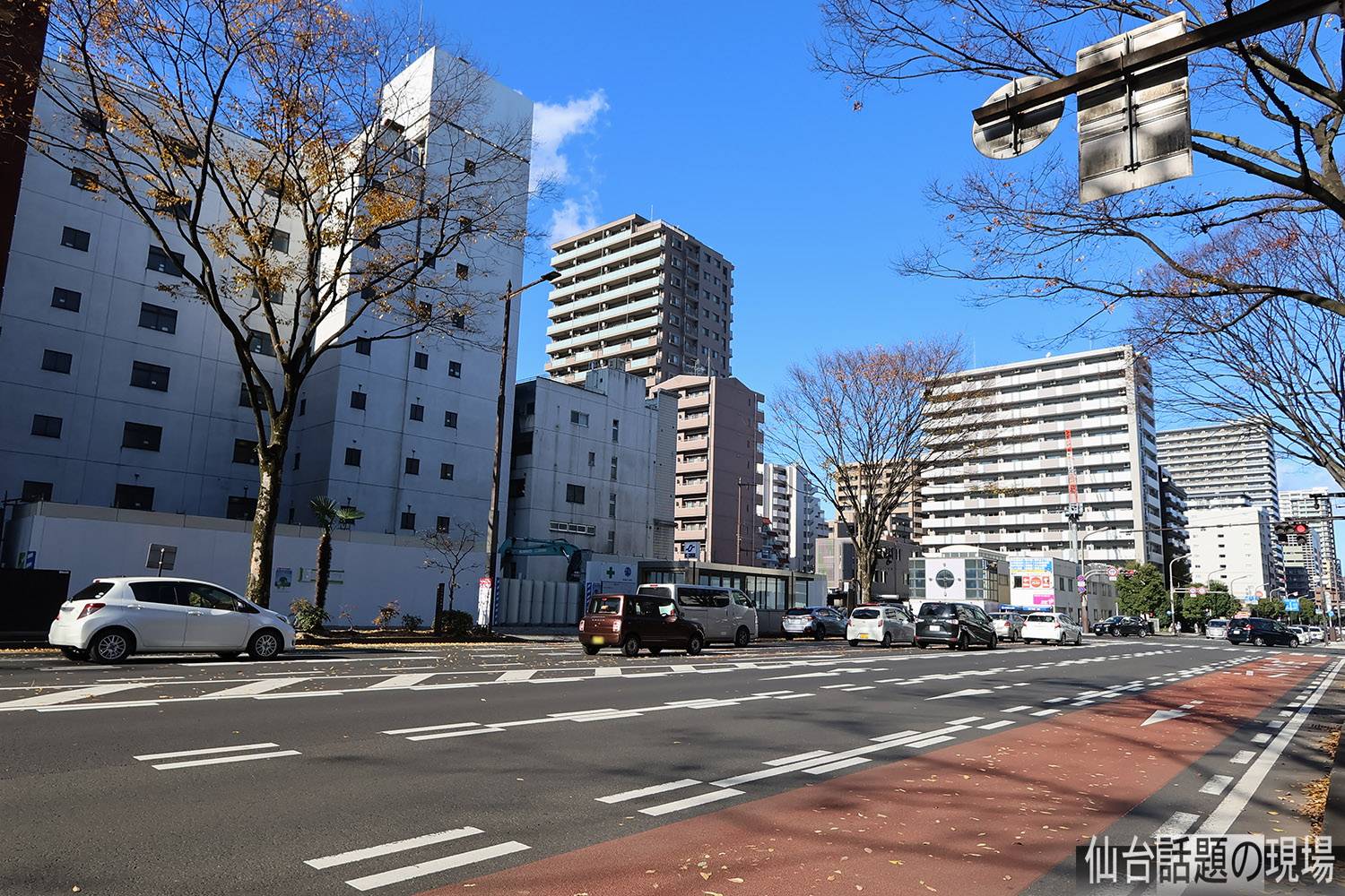 交差点を挟んだ南側、北四番丁駅の南出口の前では、カルコスビルの解体工事がほぼ終了していました。こちらの跡地でも大和ハウス工業がマンション「(仮称)プレミスト勾当台通」を建設することが発表されています。北四番丁駅の周辺はマンションが増えてきましたね。