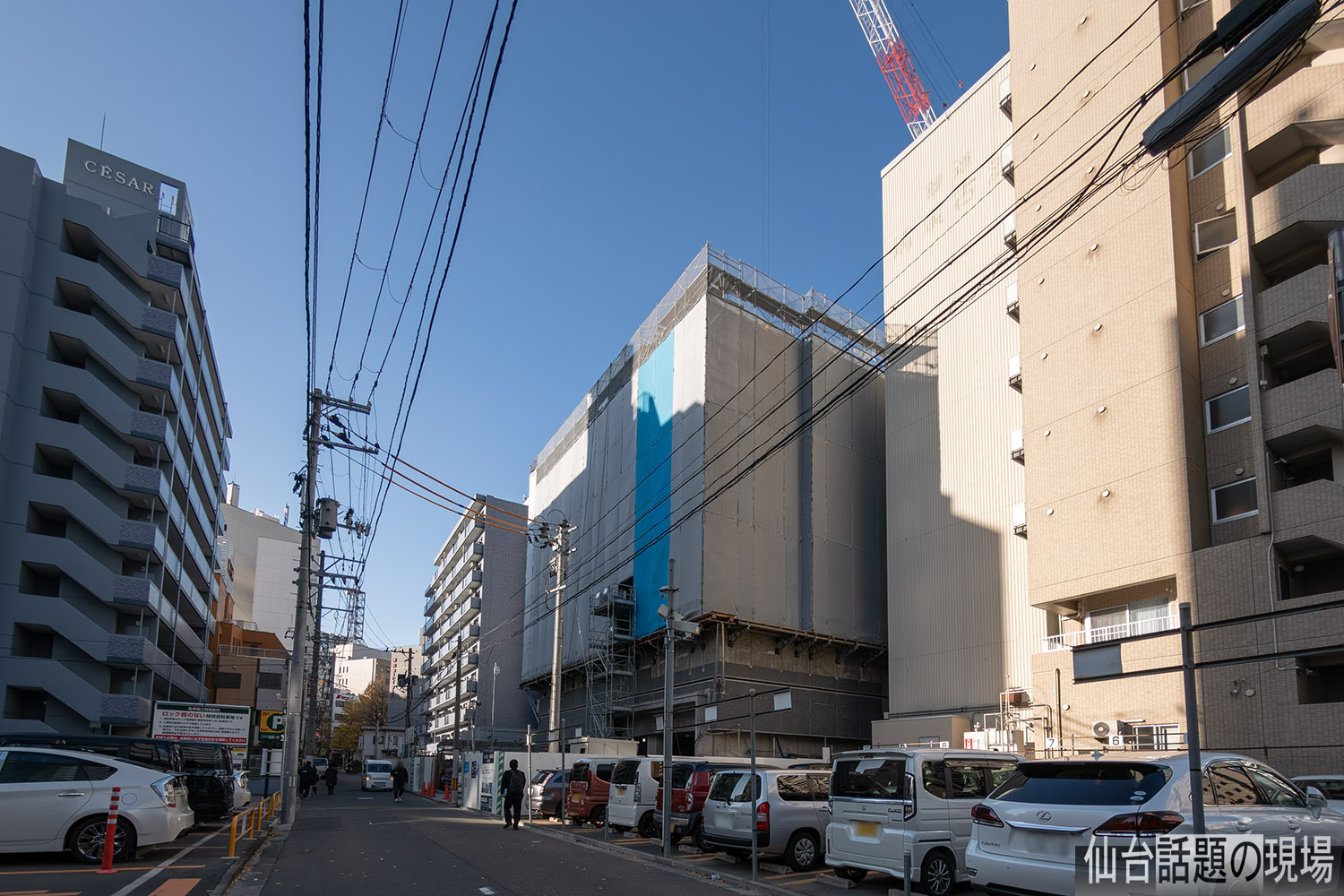 東横INN仙台西口広瀬通の西側に新しいマンションが組み上がってきました。