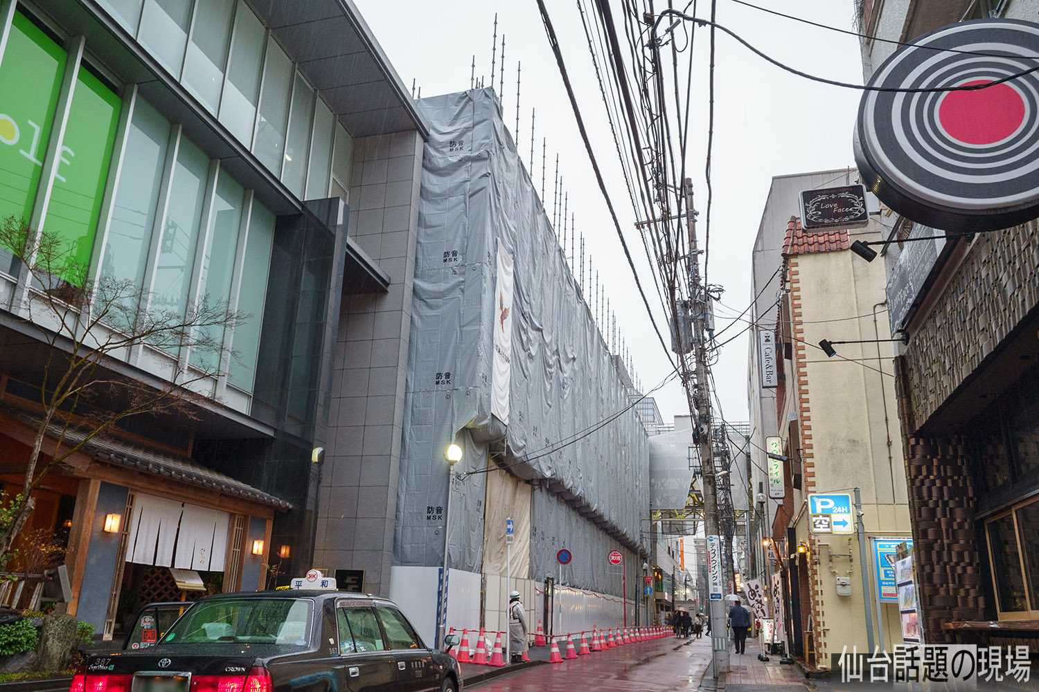 10月に見た時は解体工事が始まったばかりの時で、まだ古い建物の姿が見えていましたが、防音シートで覆われて外観が見えなくなっていました。