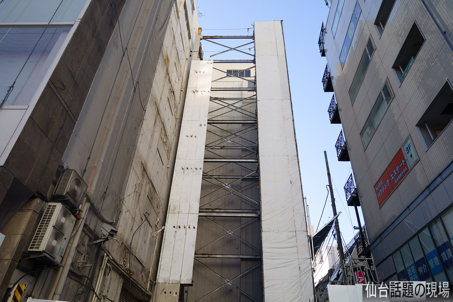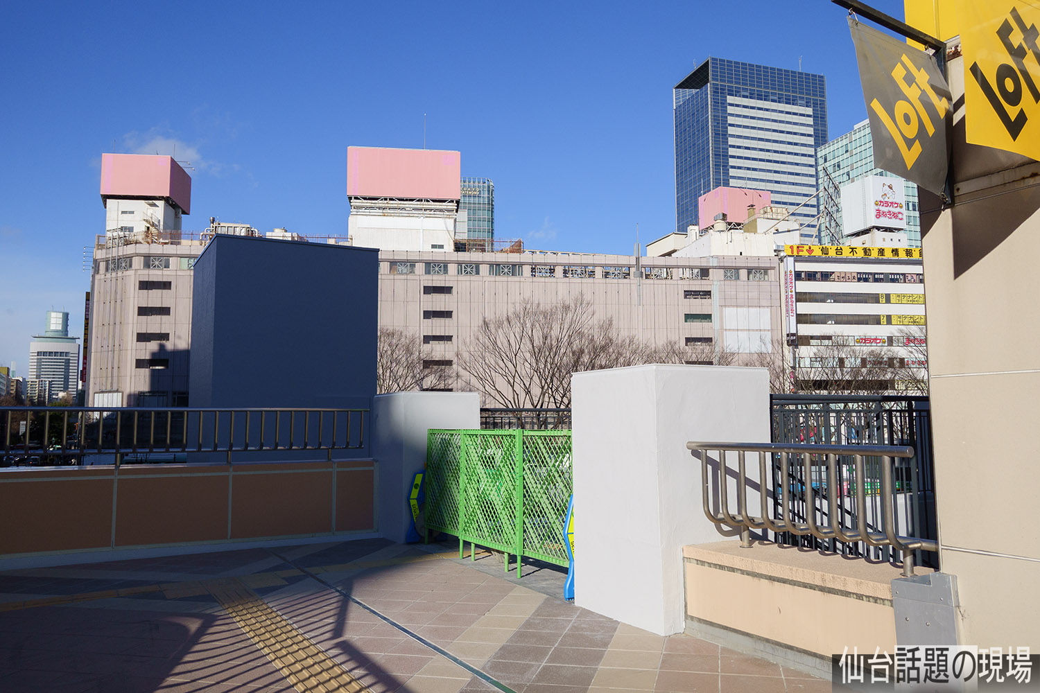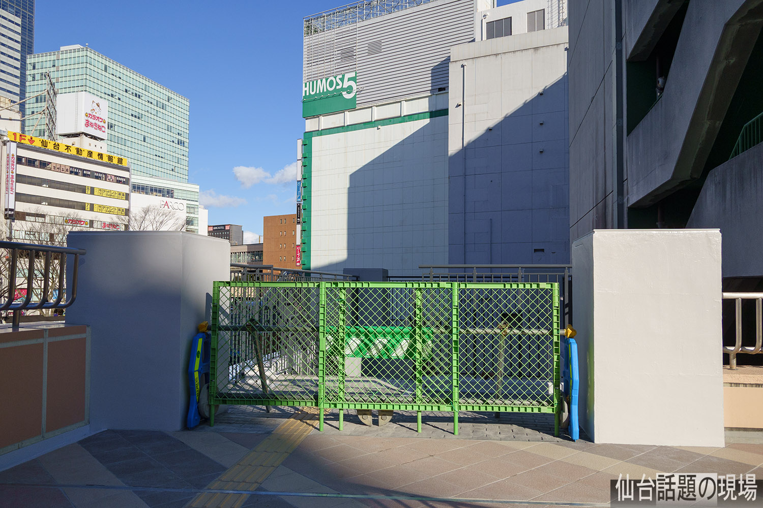 仙台駅側では、非常階段が解体されて無くなっていました。さくら野百貨店跡地の再開発は未定になってしまっていますが、解体工事は着実に進んでいます。