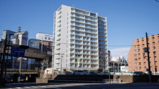 新北目町ガードの隣接地に新しい賃貸マンションの外観が見えるようになっていました。