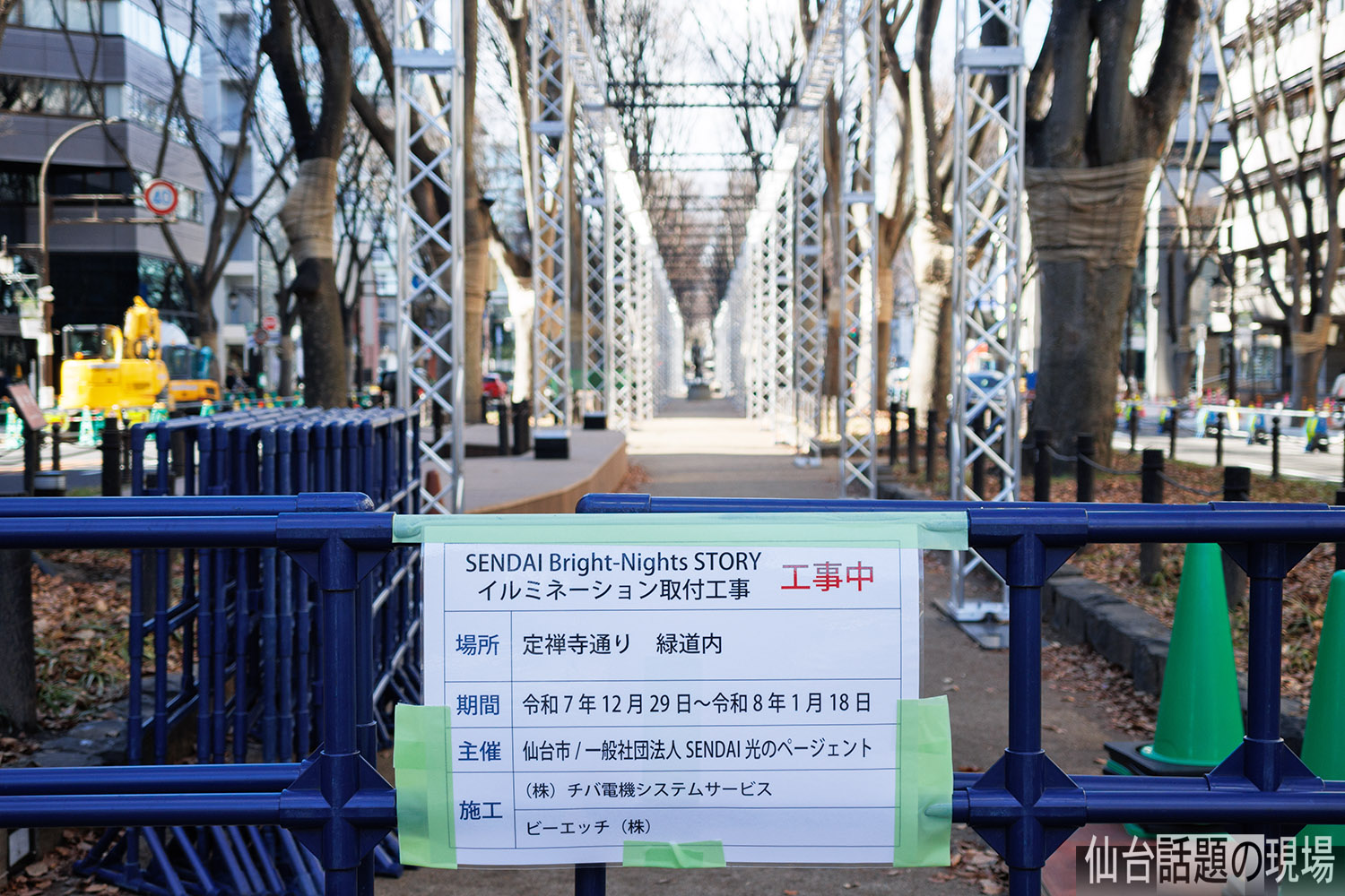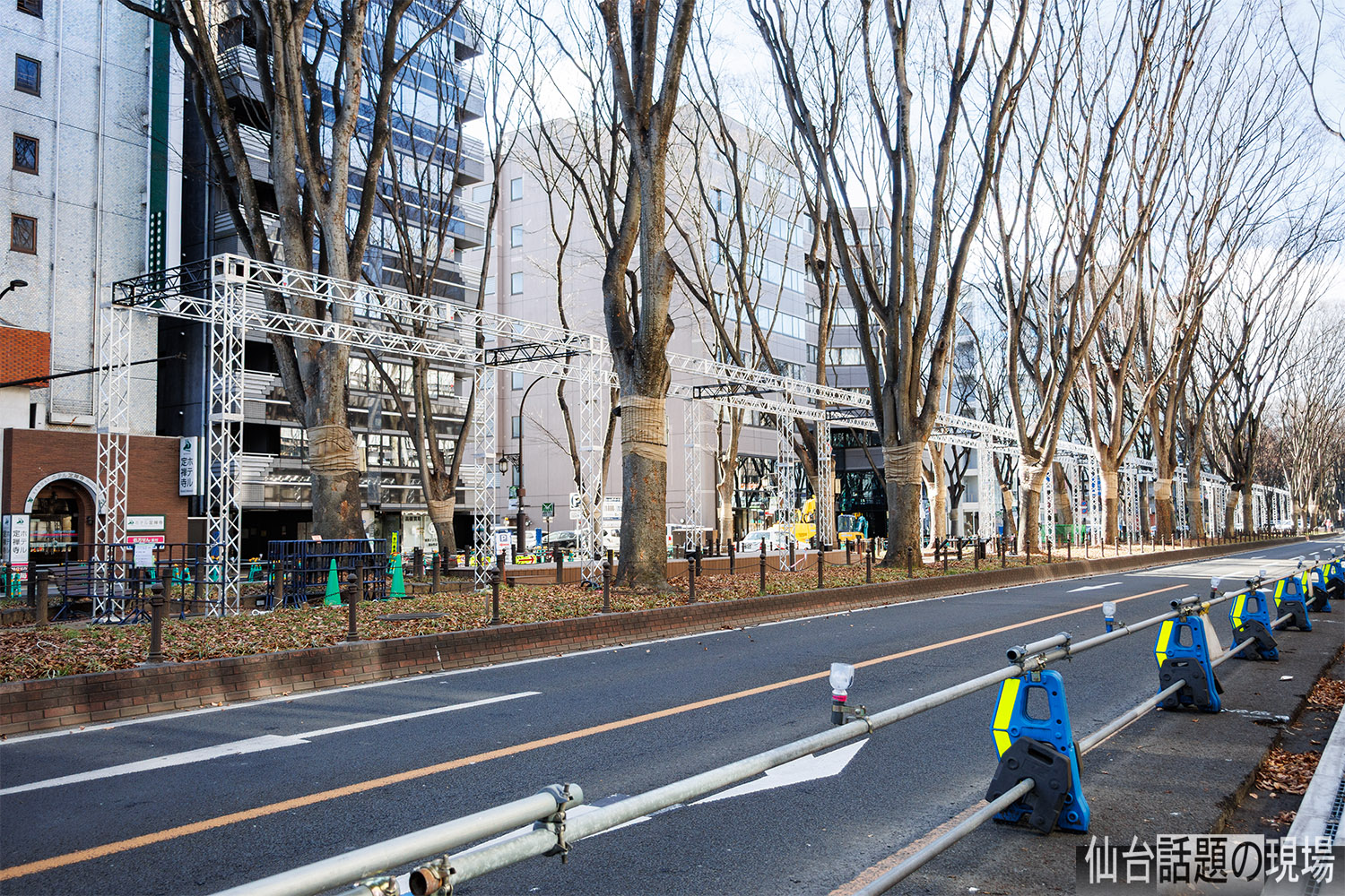 現在は取り付け工事中ということで緑道の中には入れませんでしたが、光のページェントの第2弾とも言えるイベントなので、どのような新しいページェントを見せてくれるのか期待されますね。開催期間は1月19日から2月28日まで、定禅寺通と勾当台公園で行われます。