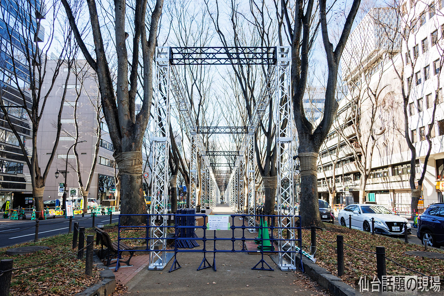 この柱は、1月19日から開催される新たなイルミネーションのイベント「SENDAI Bright-Night STORY」に使用されるもので、この柱にイルミネーションの飾りやLEDが取り付けられるようです。