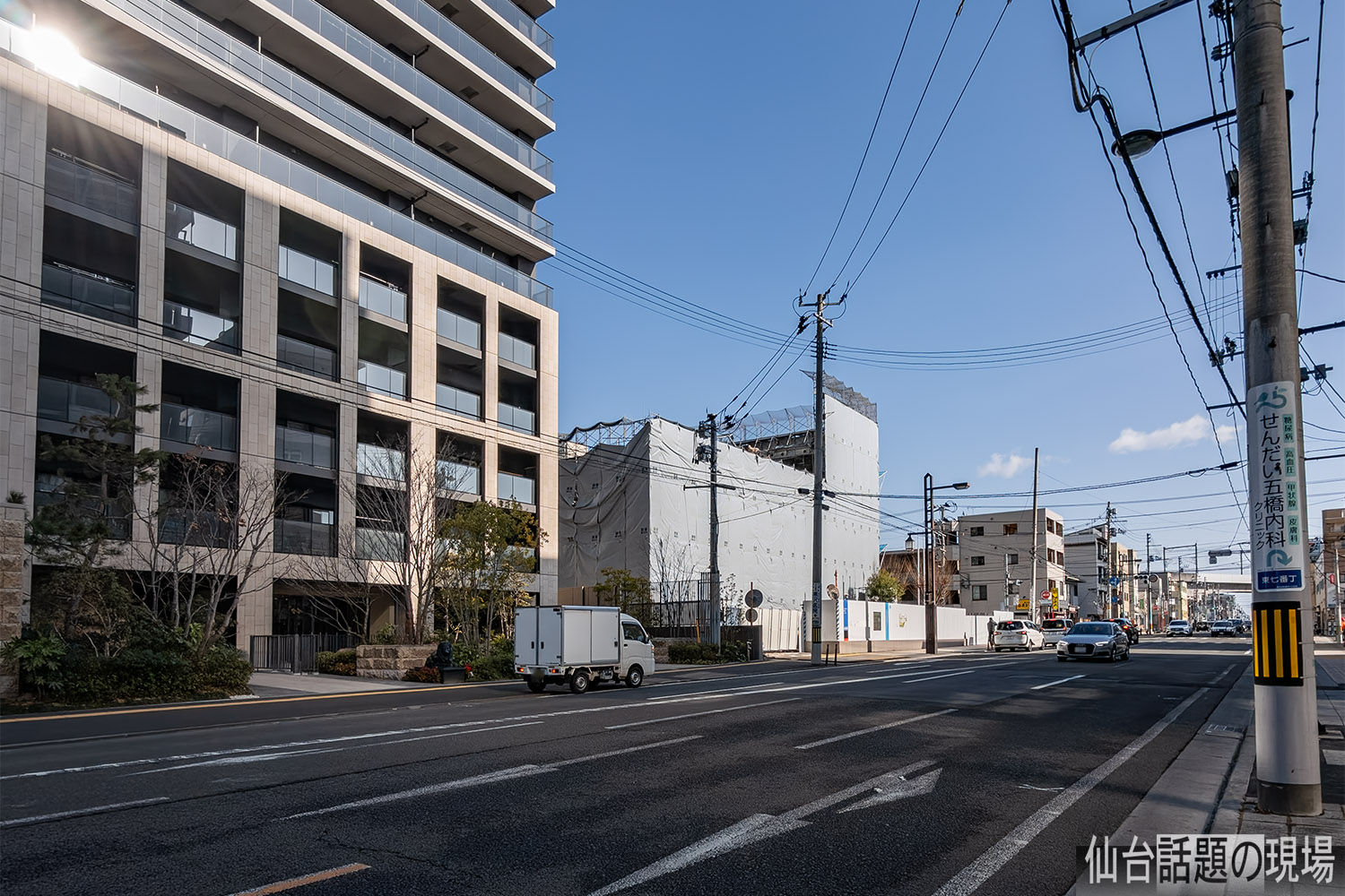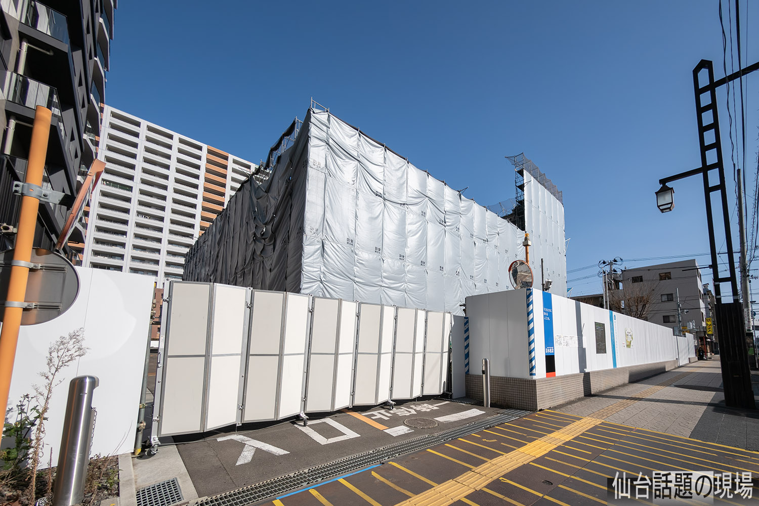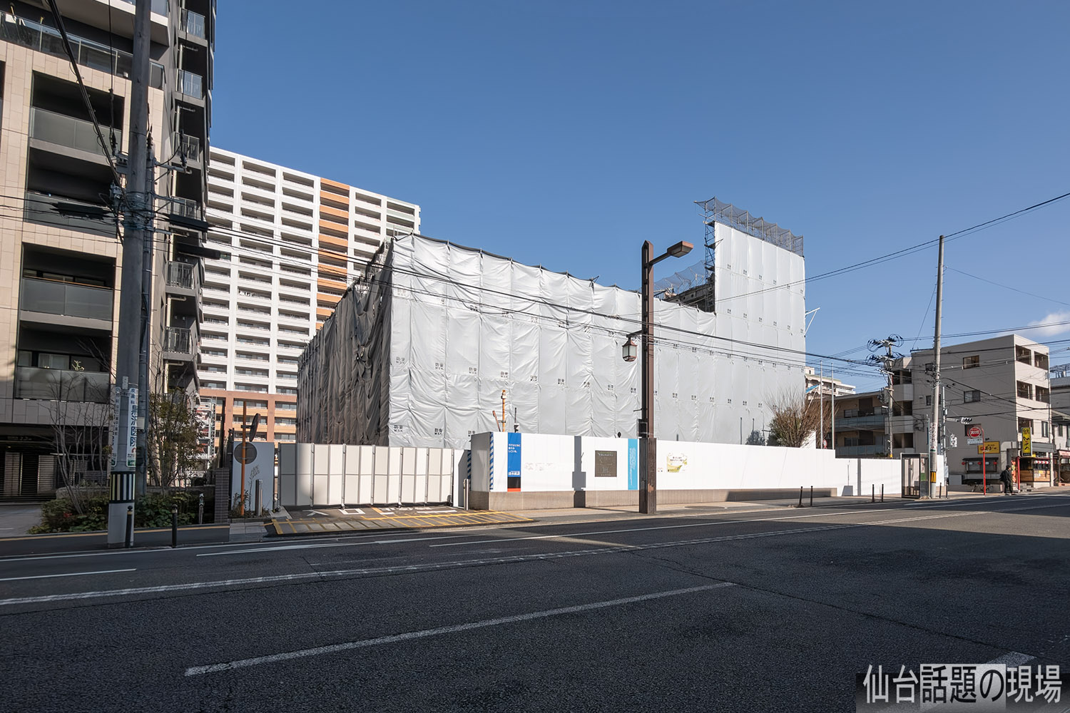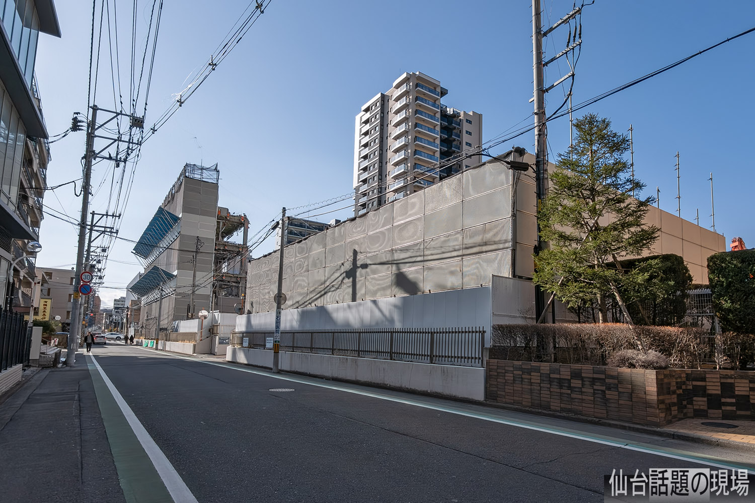 ライオンズ仙台五橋の東側、東七番丁通との交差点の北西角の場所で解体が進んでいます。