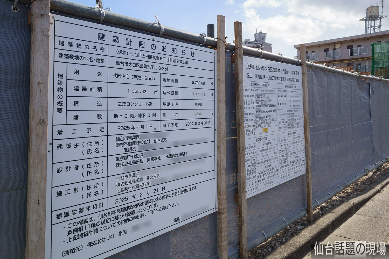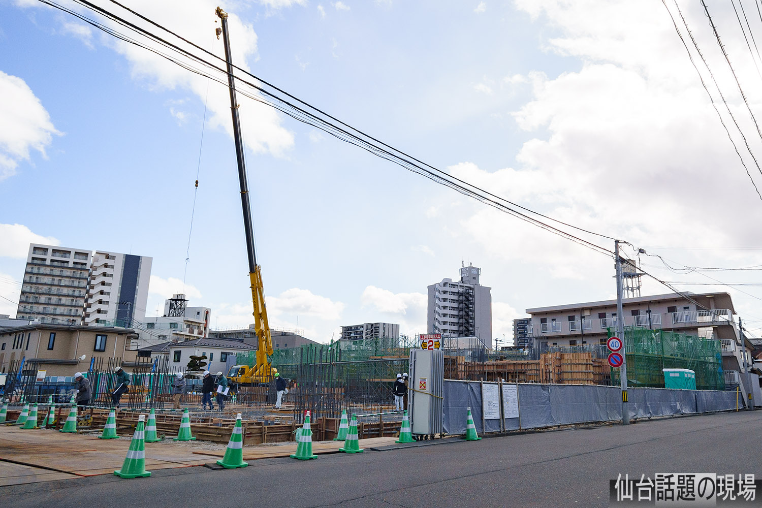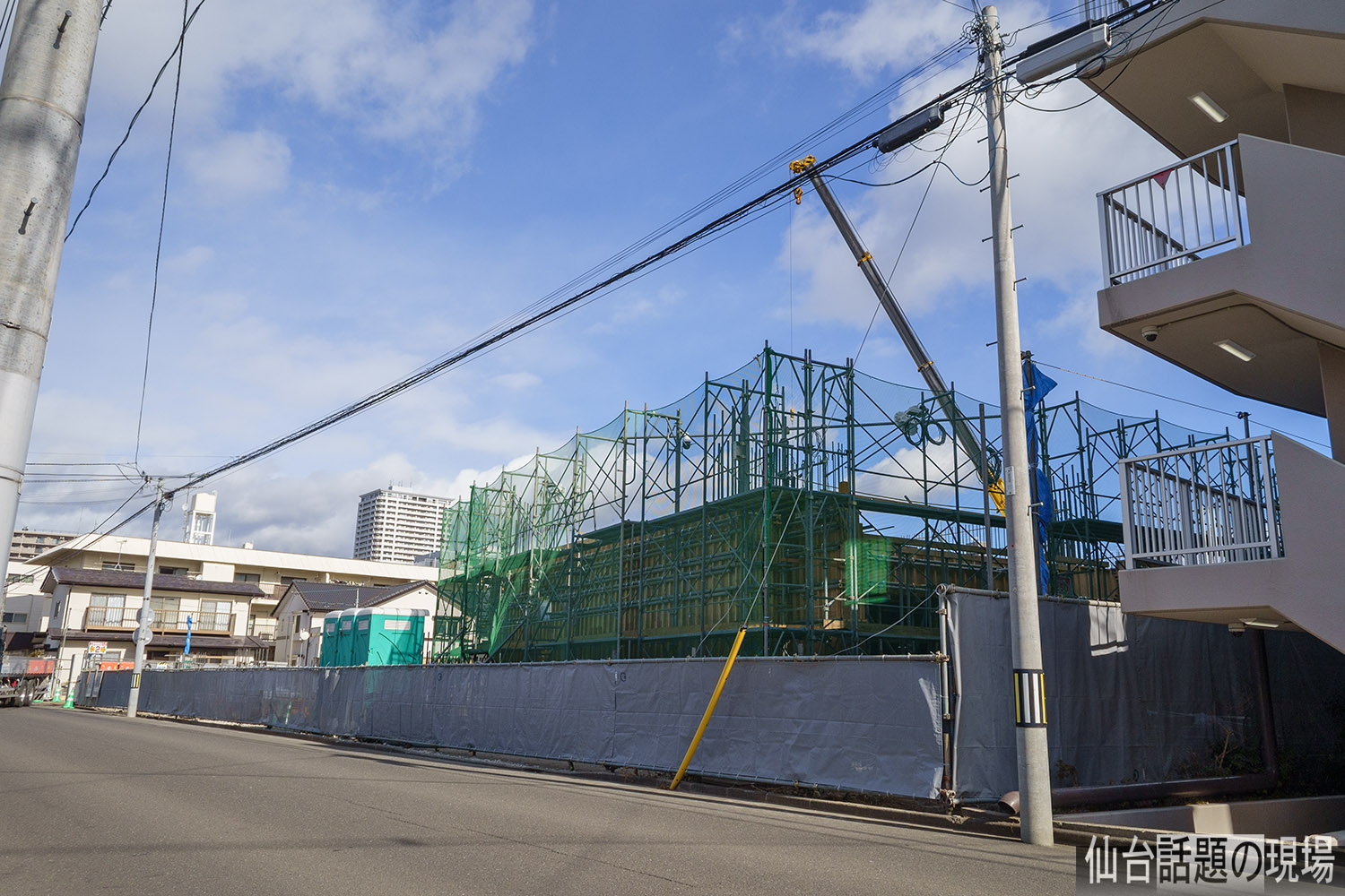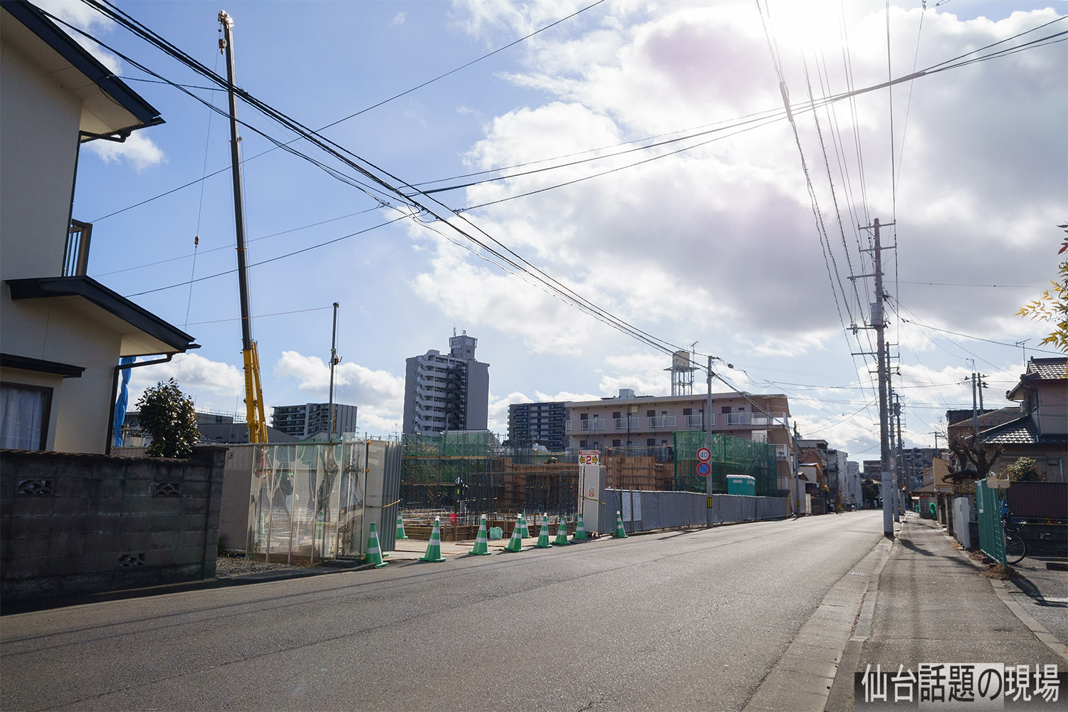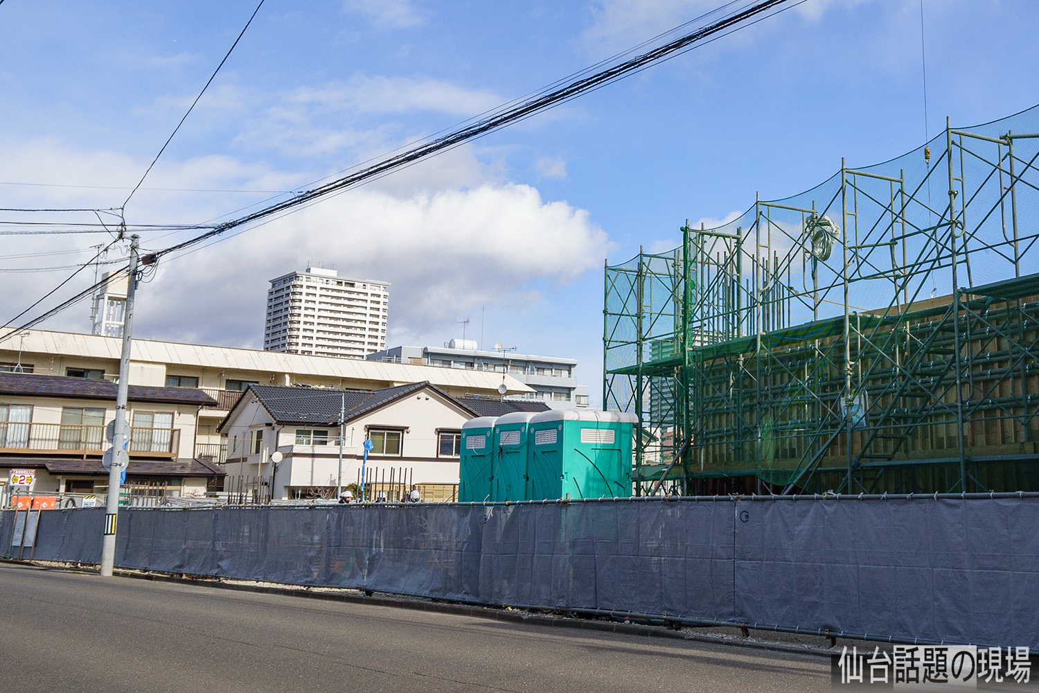 建設現場から北の方には、長町駅前の高層マンション「ライオンズタワー仙台長町」が見えました。長町駅からすぐの場所ですね。