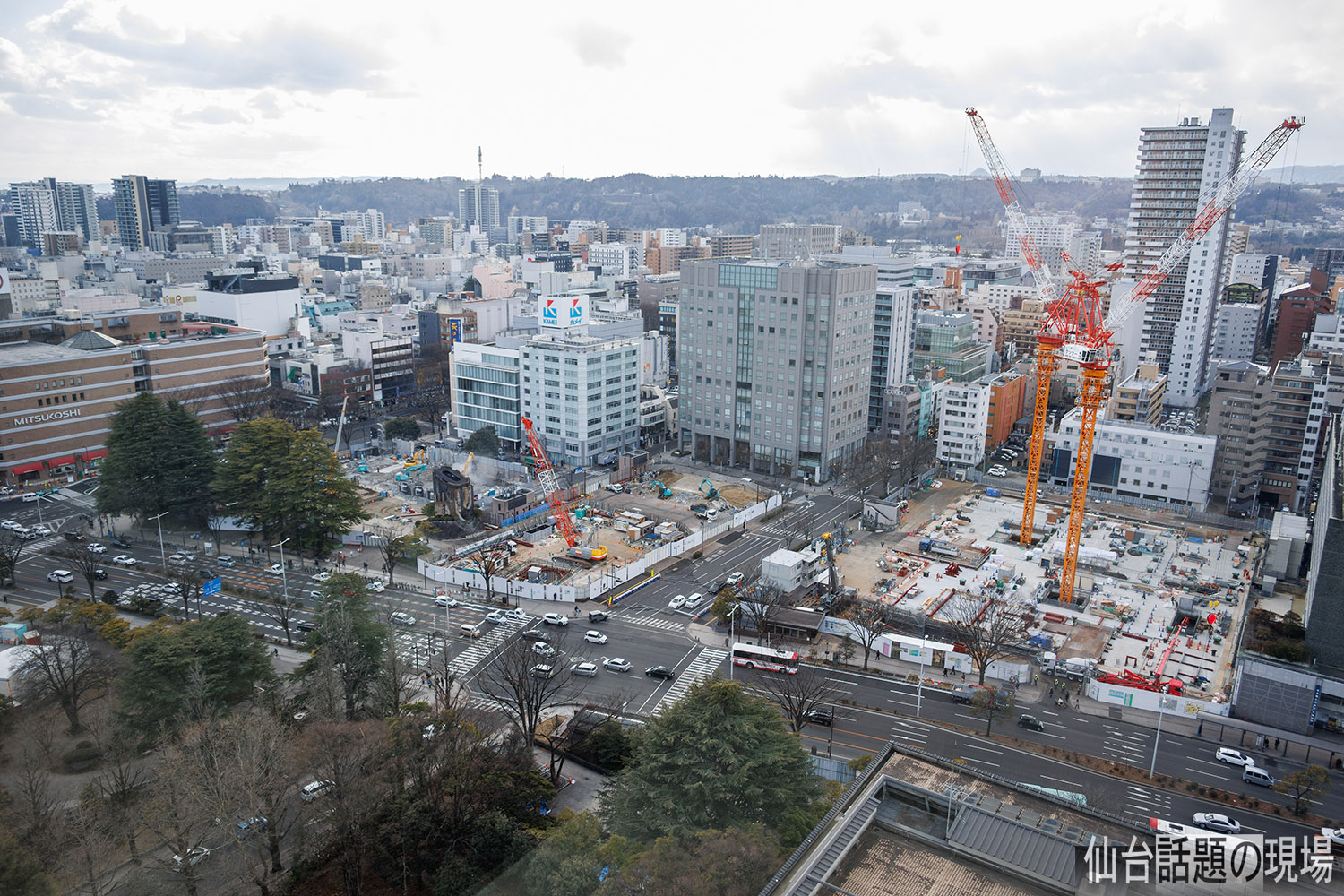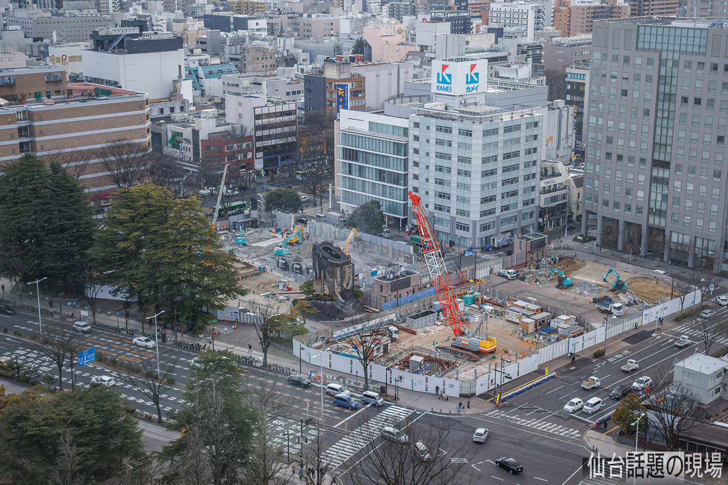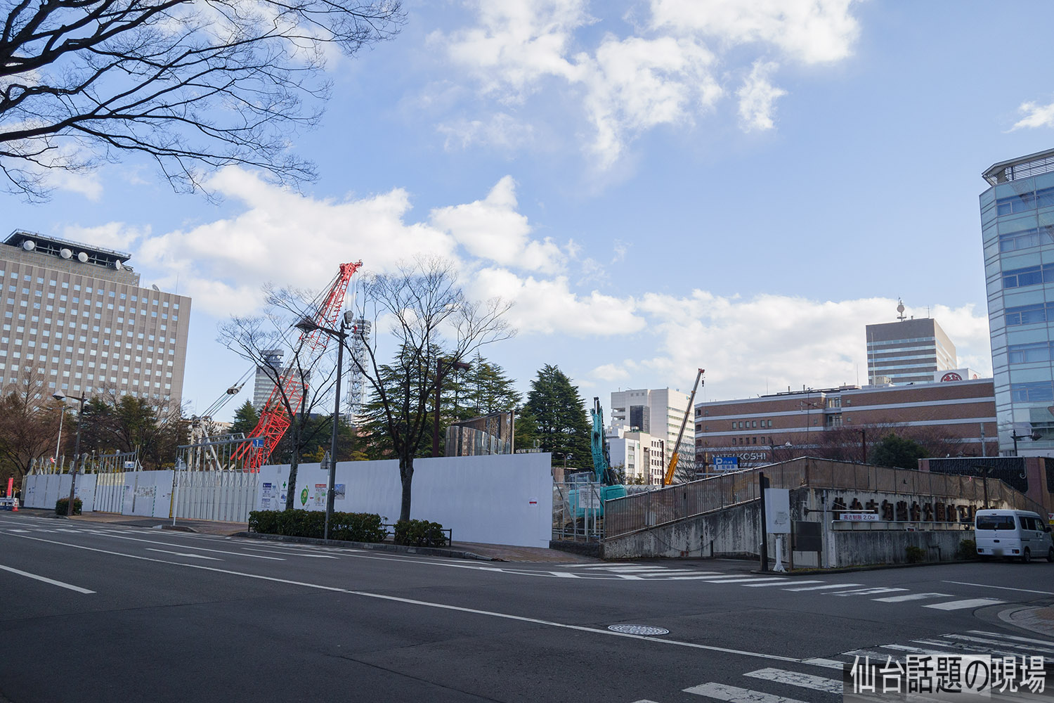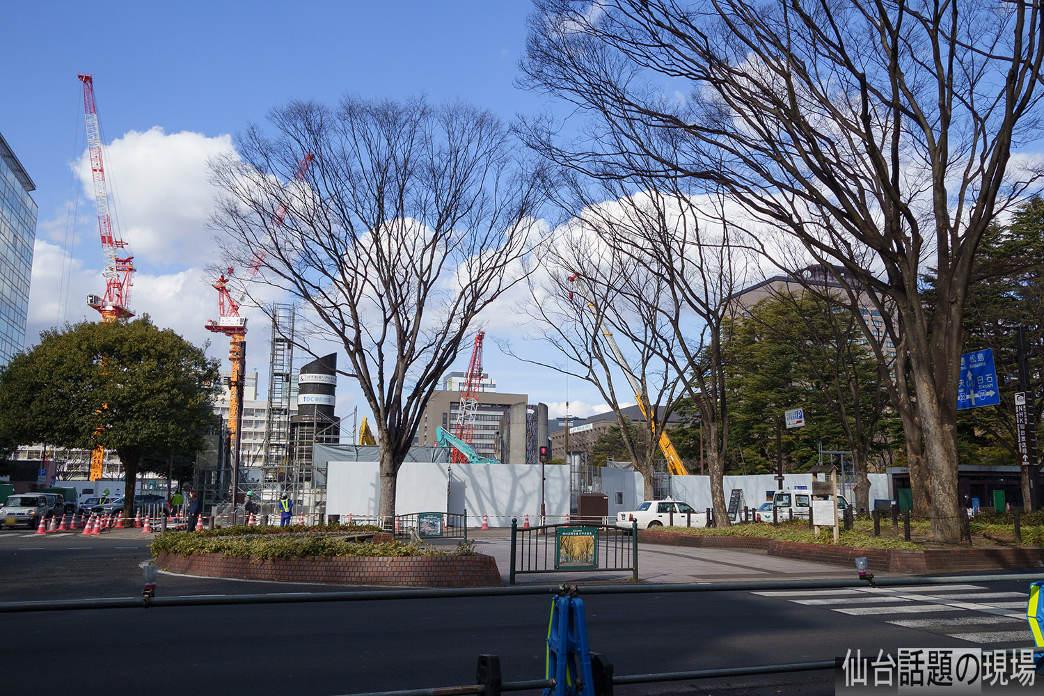 すぐ北側で行われている仙台市役所新庁舎の建設工事も、地下部分の工事から地上の躯体の組立てへと進んできたようで、今年は周辺の街並みが大きく変化していくんでしょうね。