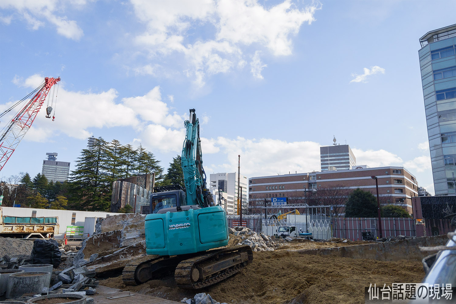市民広場のステージが取り壊されて、その跡で重機が作業をしていました。新しい仙台第一生命ビルが完成する頃には、新しい市民広場も出来上がっているでしょうか。