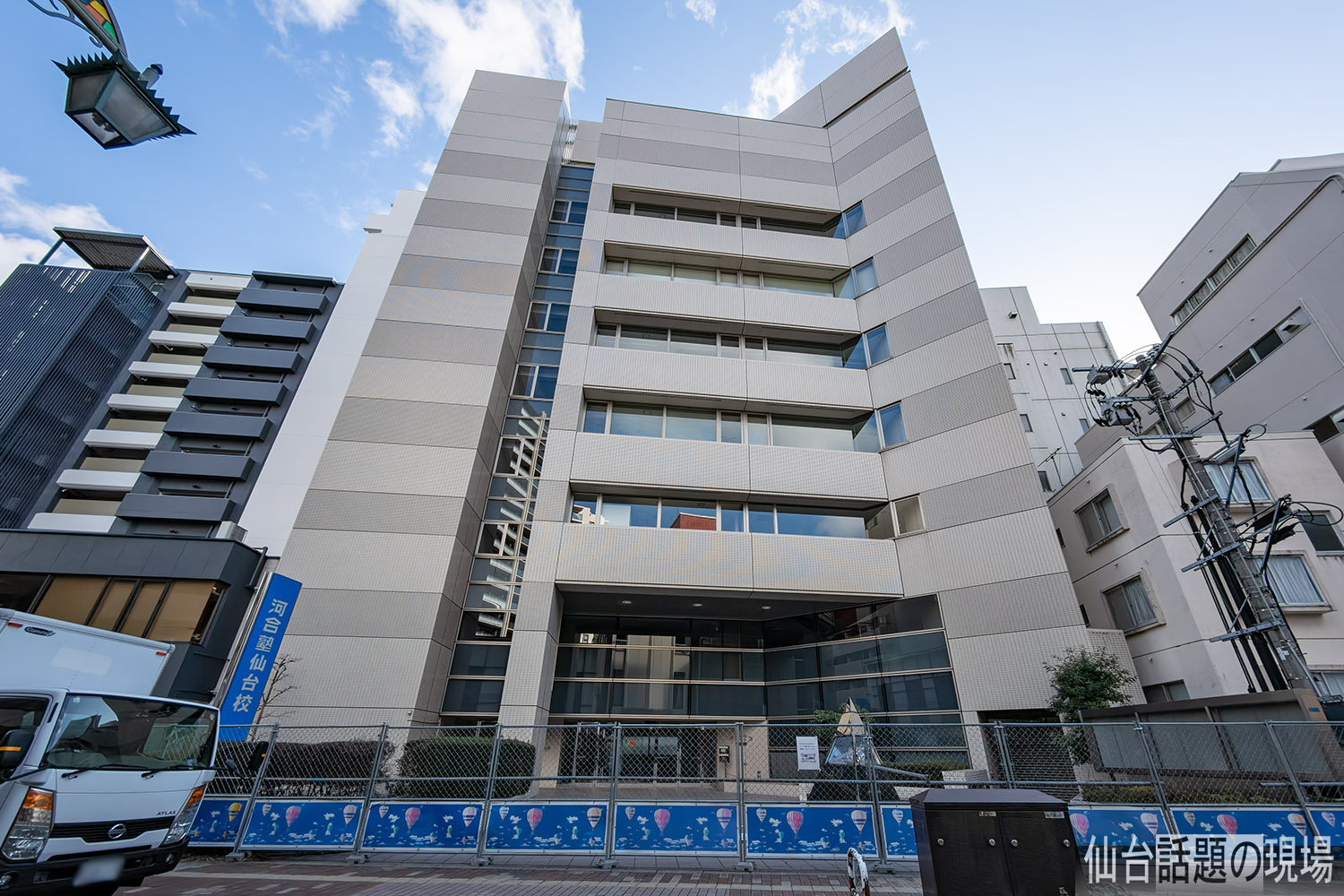 河合塾仙台校アカデミア館は、1991年に完成した地上8階建ての予備校の校舎ですが、昨年には教室と自習室としての使用が終了していたようです。