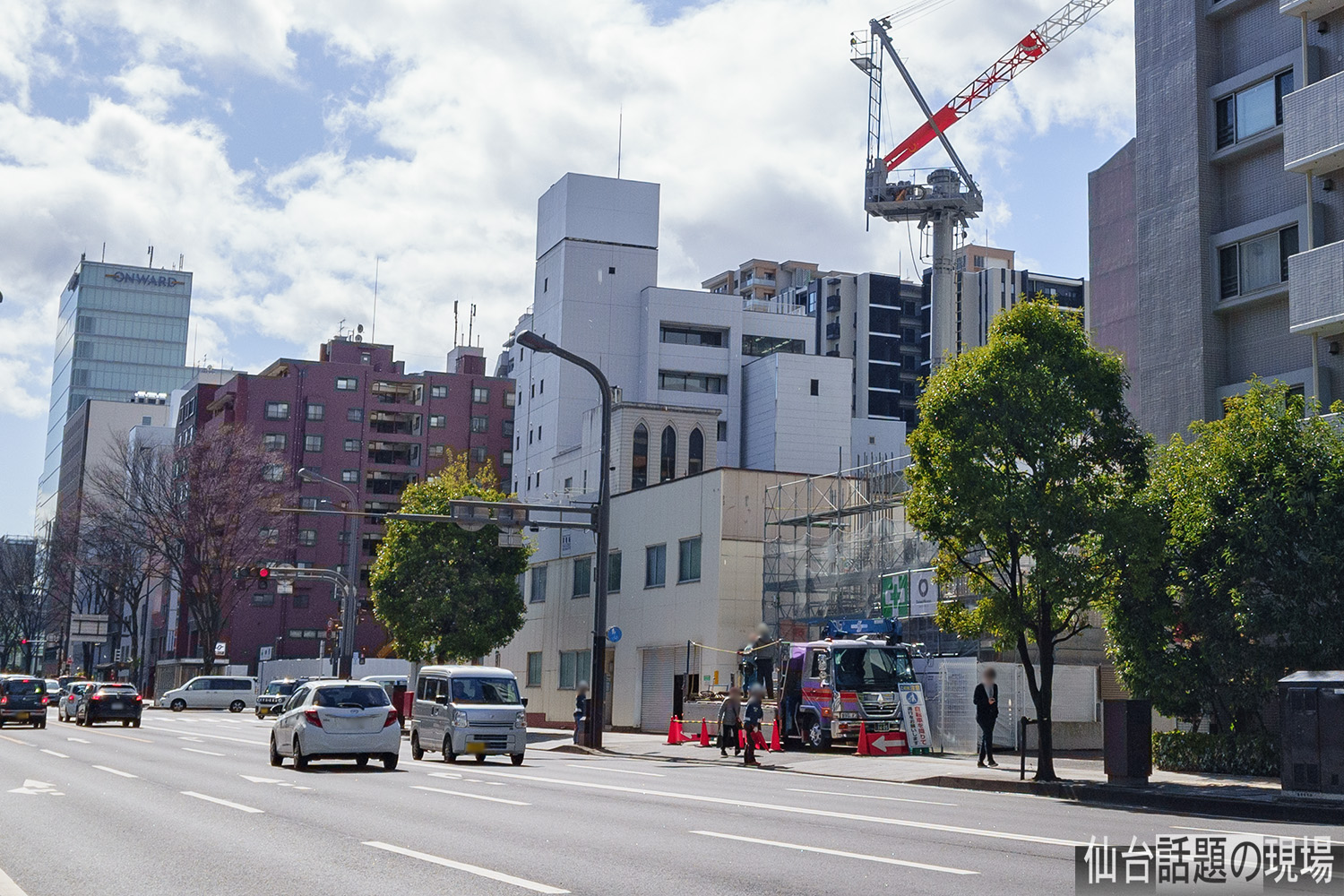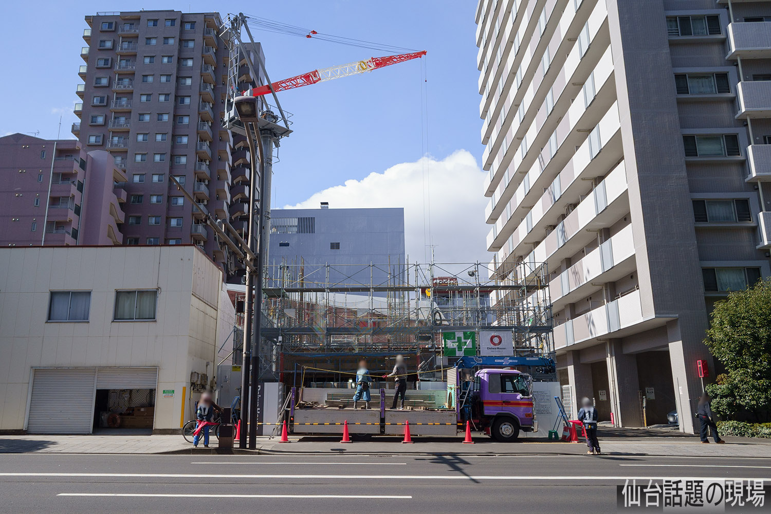 地下鉄南北線、北四番丁駅の近くで行われている2件の建設工事の状況を見てきました。1件目は懐仁堂ビル跡地で進んでいる「(仮称)K‐HK青葉区木町通計画」です。