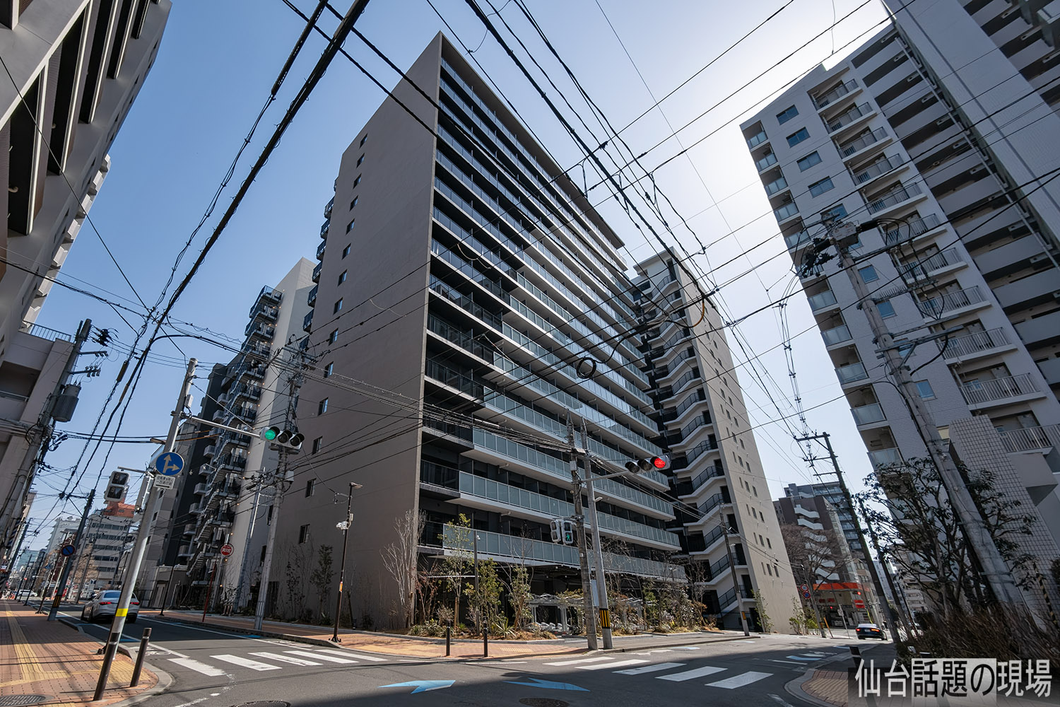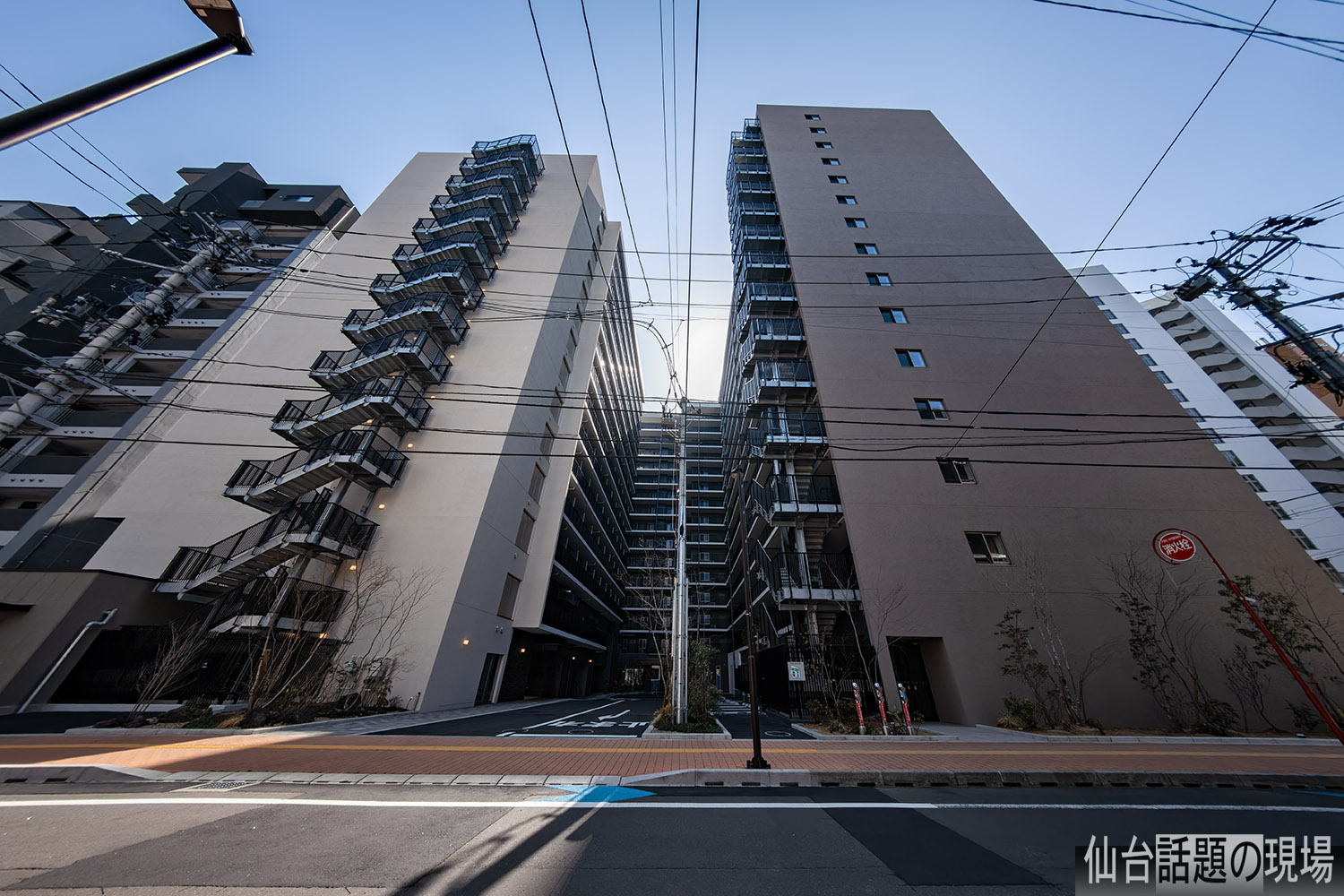 青葉通のアークホテル跡地に完成した高級賃貸マンション「ロイヤルパークス仙台青葉」は、青葉通に面していますが、同じ敷地内の北側には学生寮が併設されています。