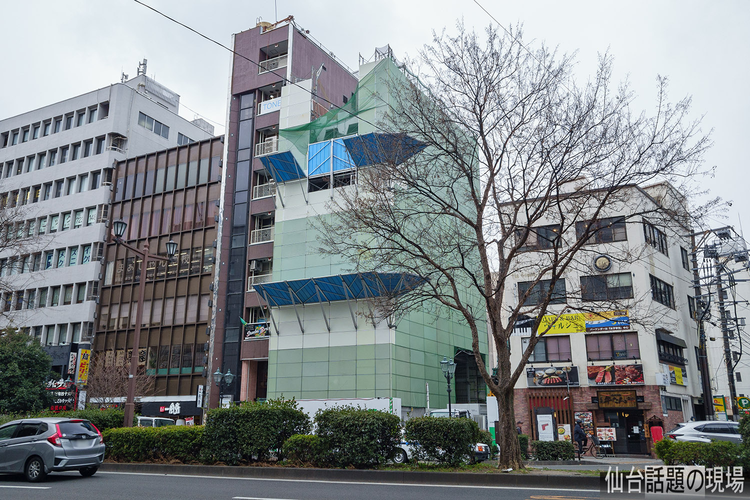 仙台東邦ビルの、愛宕上杉通を挟んだ向かい側(西側)では、ダイヤクレストビルの解体工事も進んでいます。愛宕上杉通沿いで同時期に、向かい合う古いビルが姿を消すことになります。