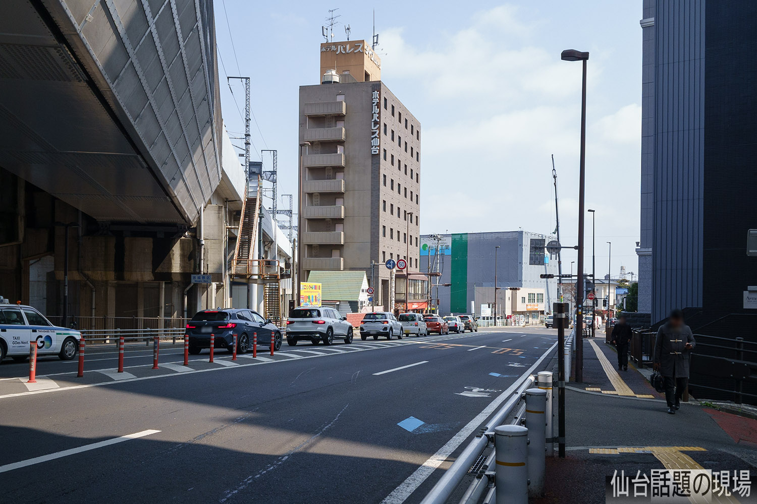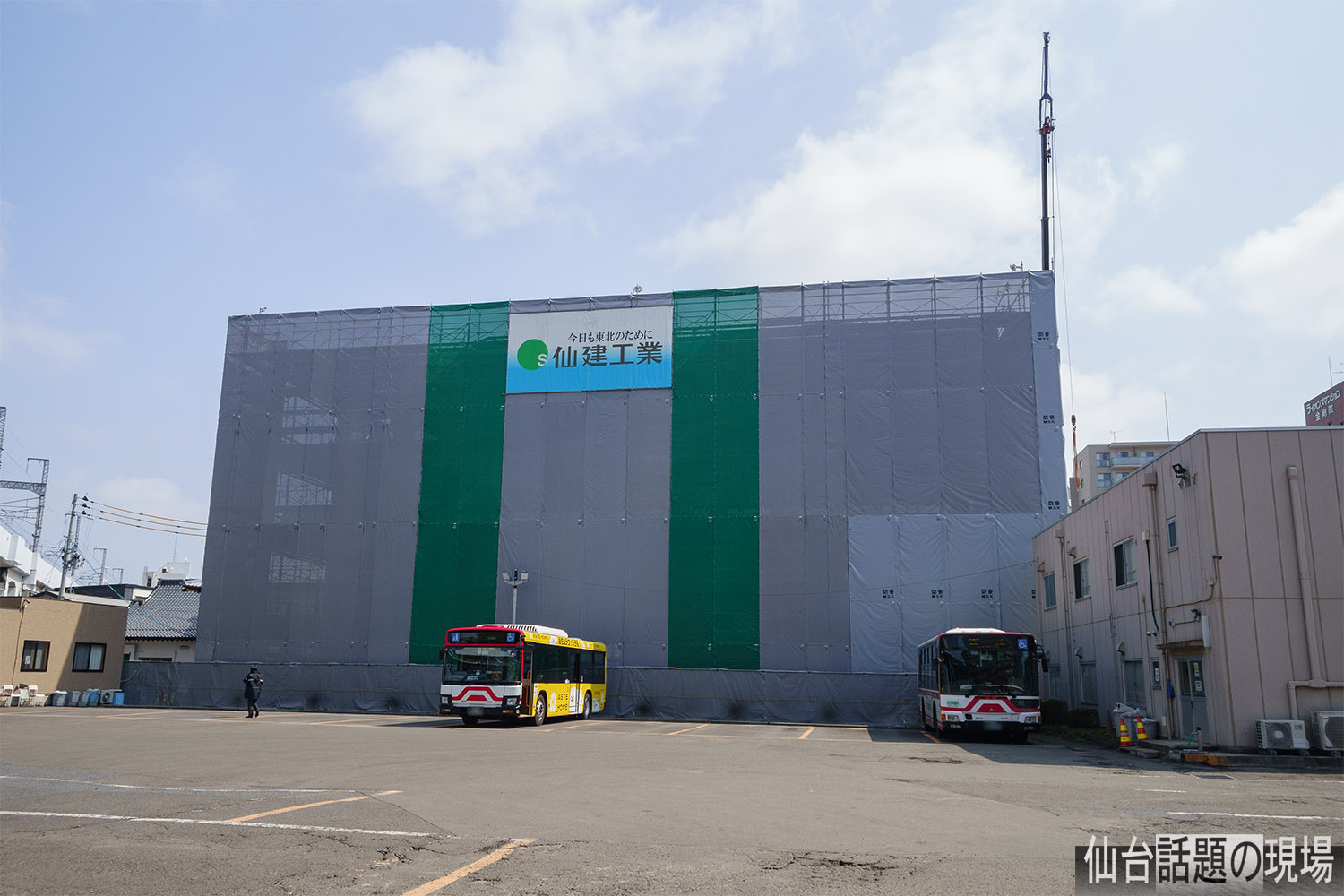 宮城観光サービスの東側、以前は「上田裁縫専門学校」があった場所に建設されています。2階建ての建物の隣にあるせいか、思ったよりも大きく感じました。