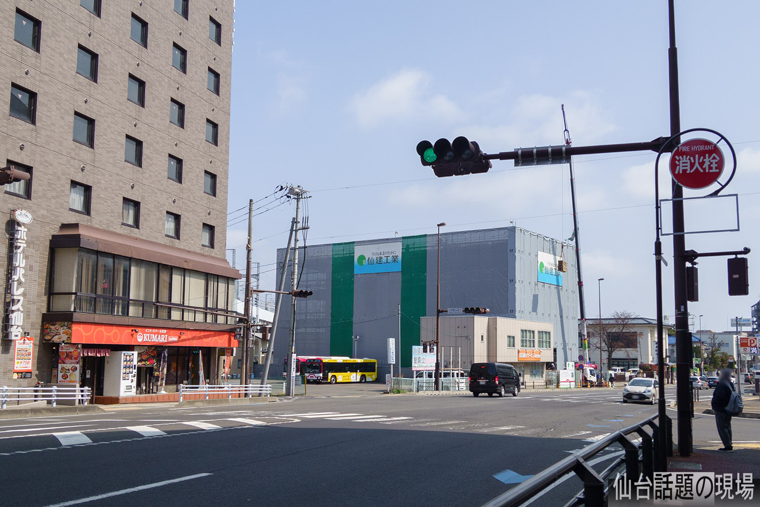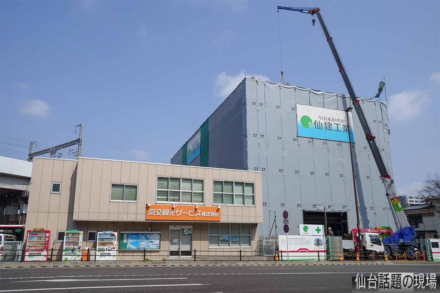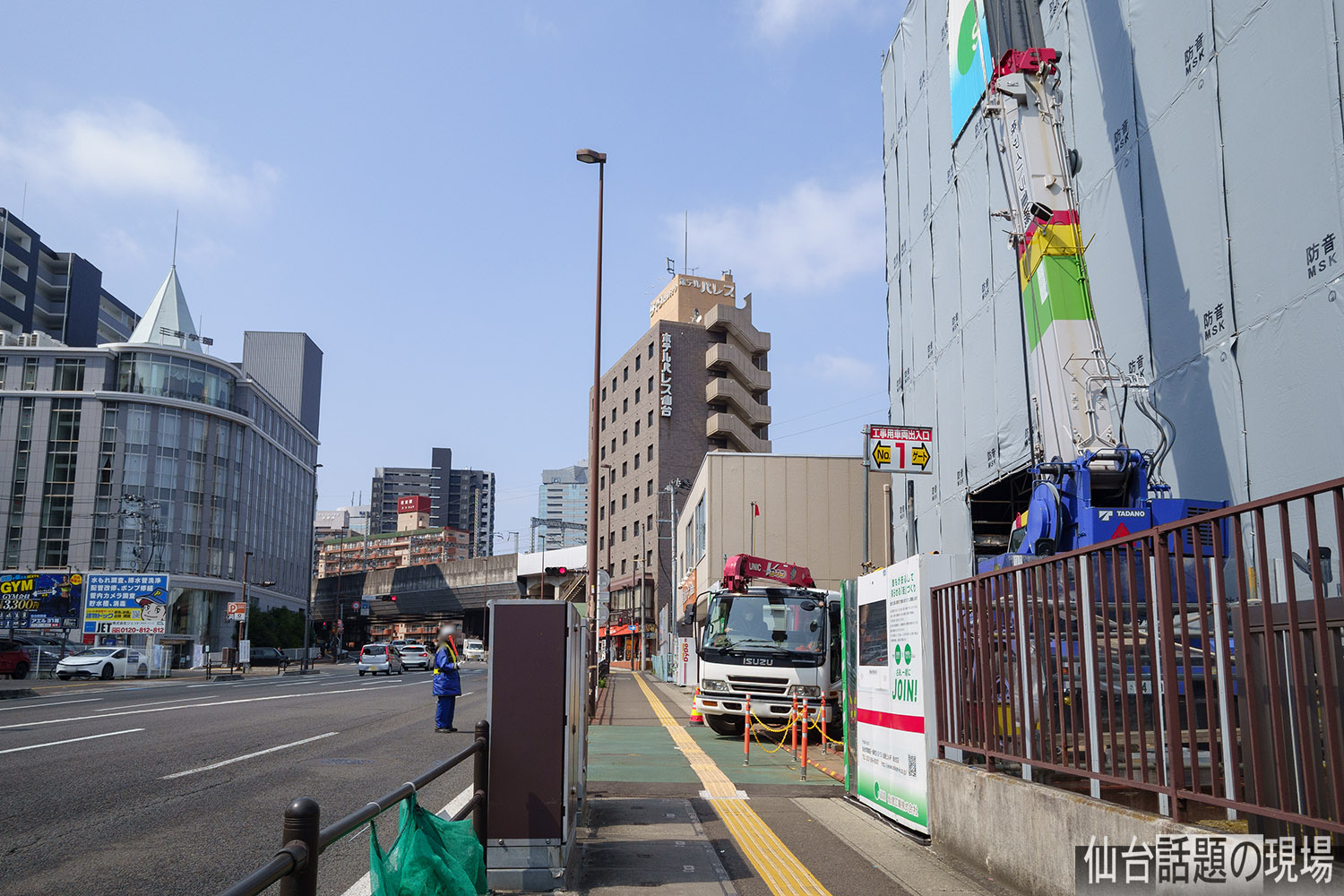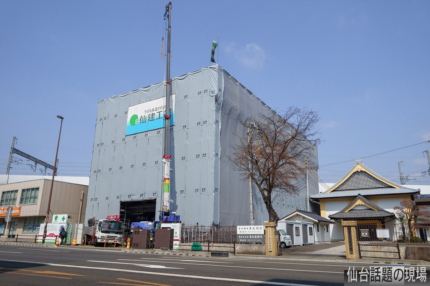 東北新幹線の高架の東側、国道45号線と小田原車通の交差点、北東角の場所で建設が進んでいます。