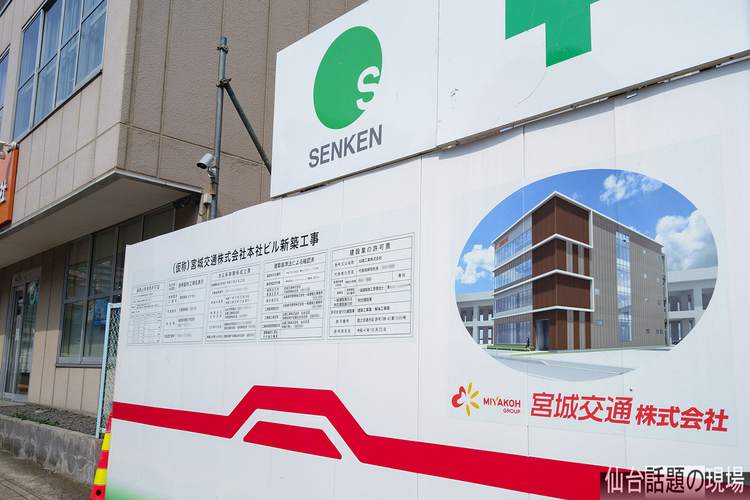 「(仮称)宮城交通(株)本社ビル新築工事」は、敷地面積1,149.40㎡、建築面積537.14㎡、鉄骨造の地上4階、高さ19.70m、延べ面積1,196.74㎡で、泉区泉ケ丘から移転してきます。