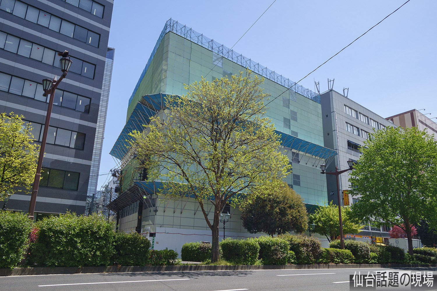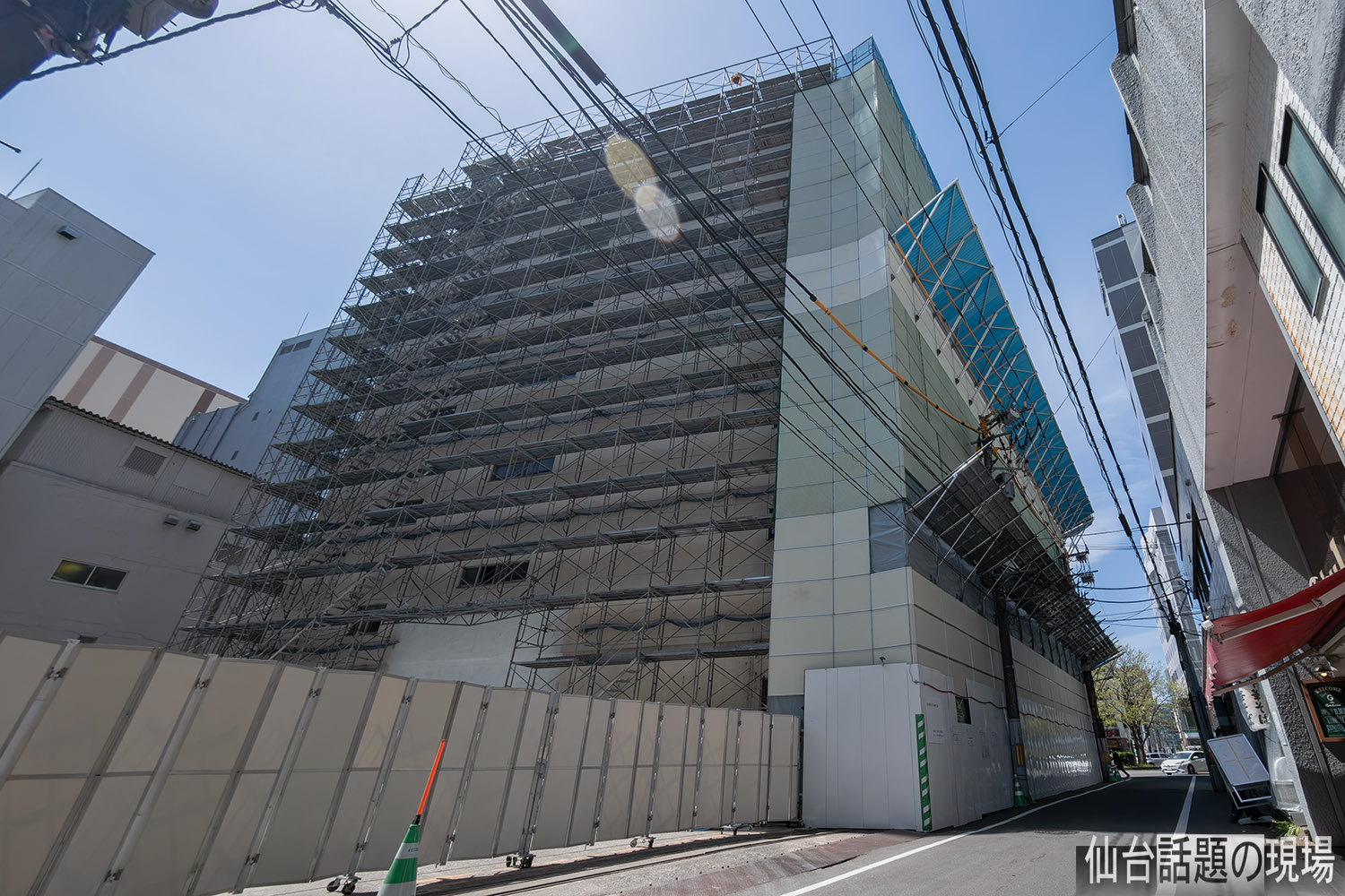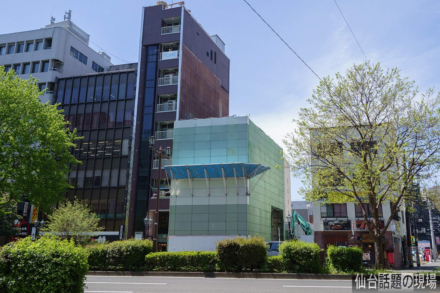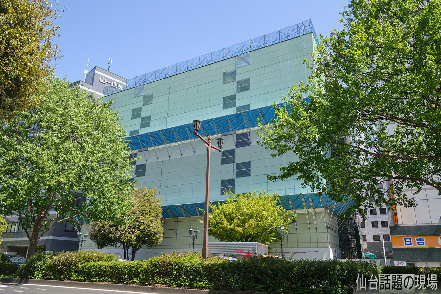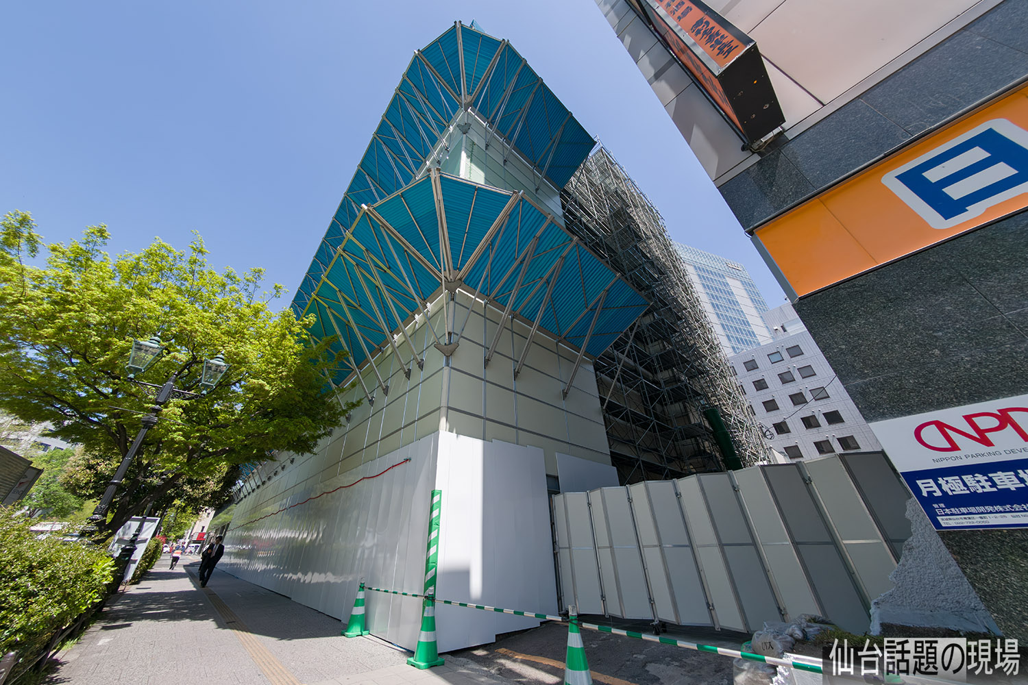 東邦銀行仙台支店だった建物が防音パネルで覆われて外観が見えなくなっていました。