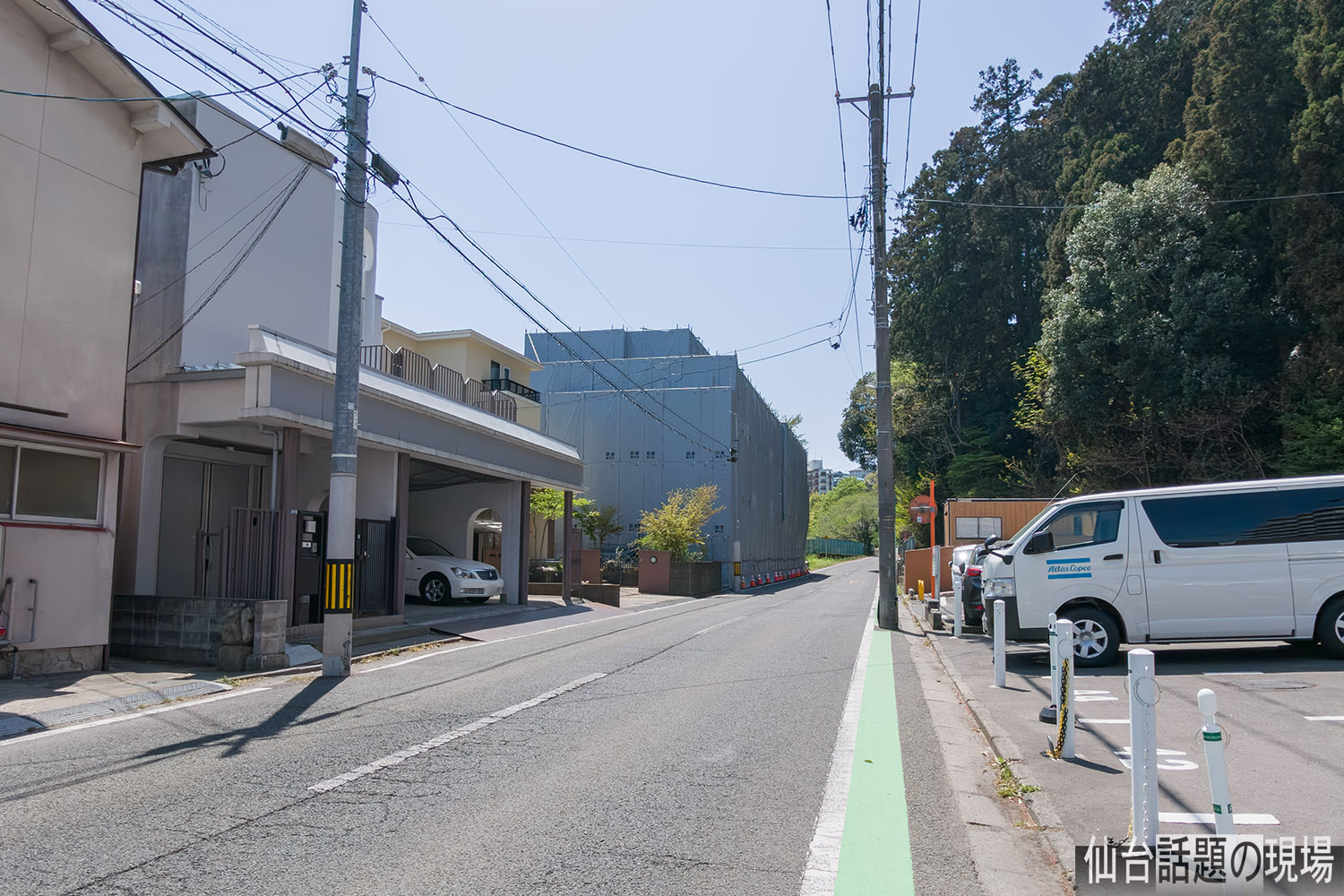 写真の左側の建物がビジネス旅館オタマヤで、写真の右側奥の方には霊屋橋が見えます。広瀬川が見下ろせる崖の上の場所なので、今後どのような再開発が行われるのか注目ですね。