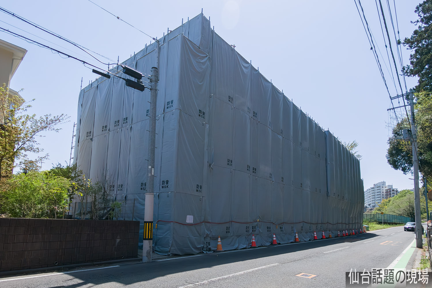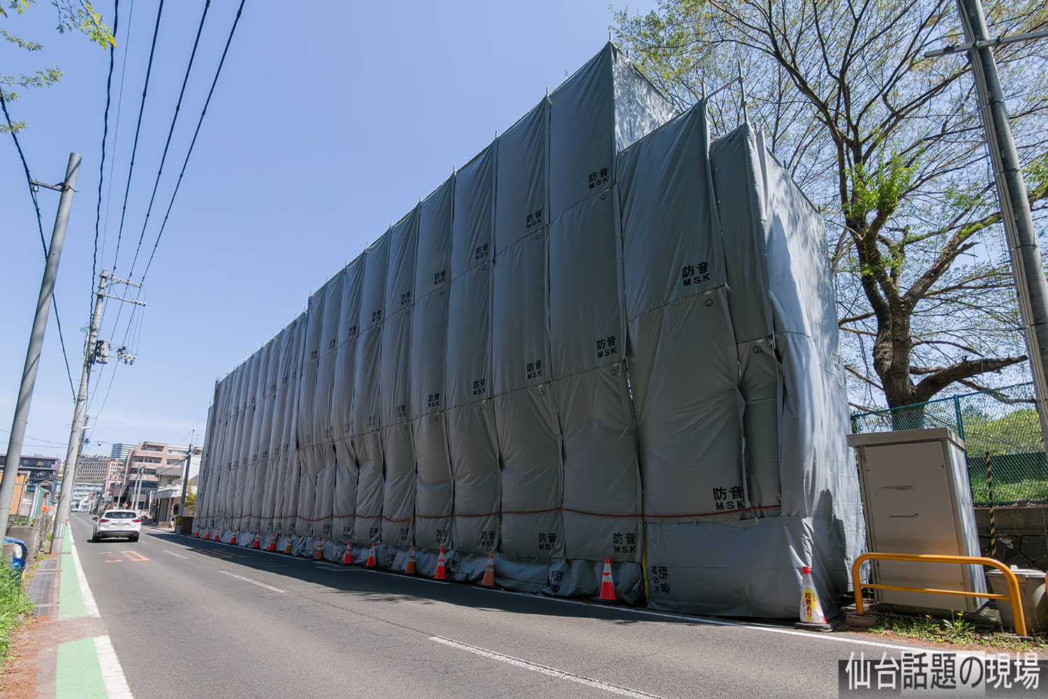 防音シートに貼られていた工事関係の掲示物によると、足場の設置期間が4月1日から5月31日までと書かれていたので、5月末まで解体工事が行われるようです。