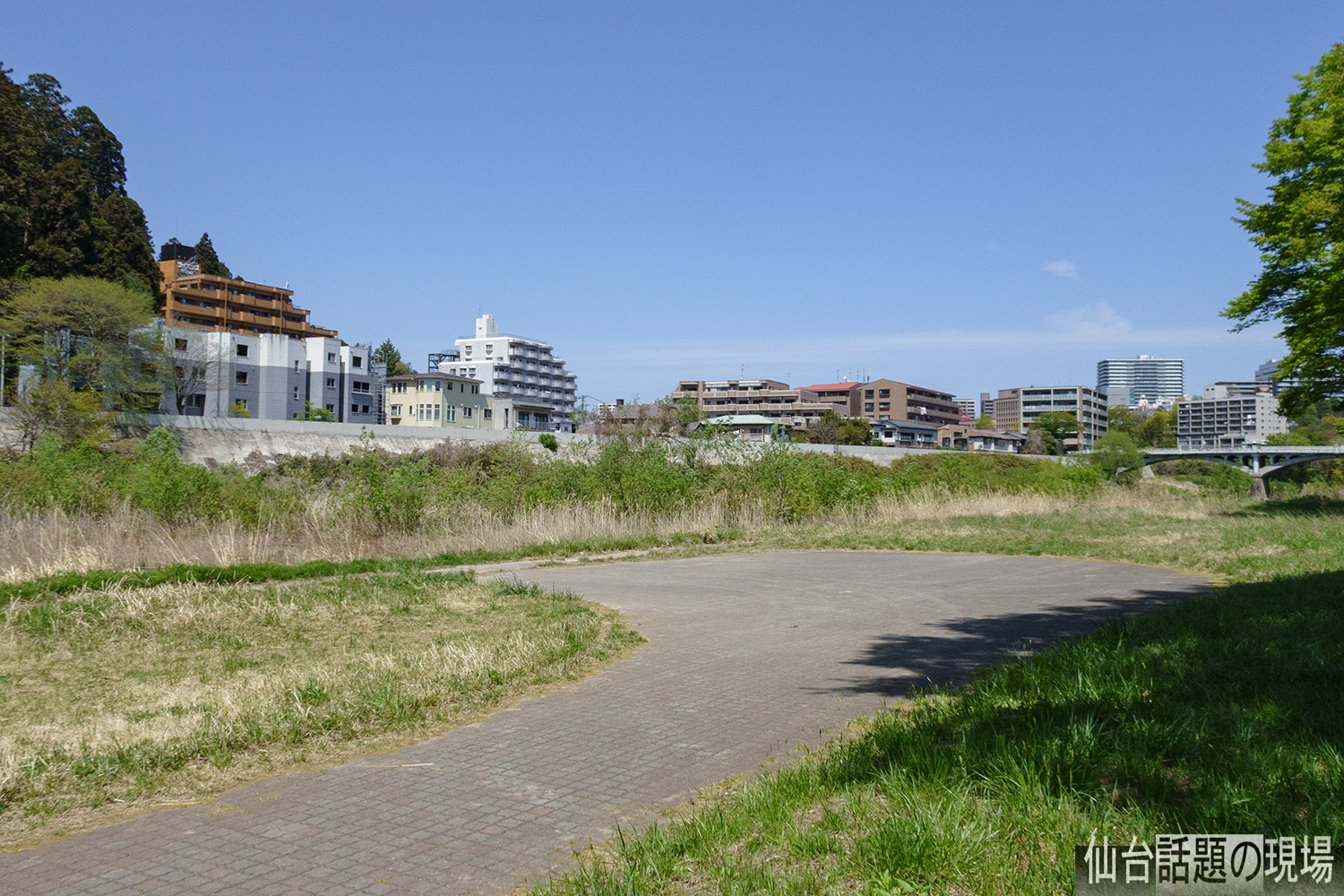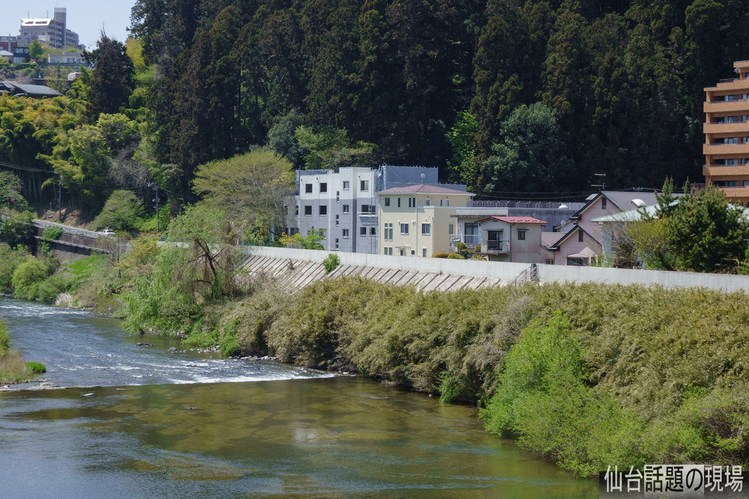 広瀬川を挟んだ東側、対岸の米ケ袋の方から撮影。