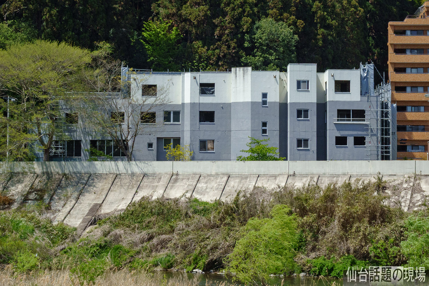 広瀬川に面している側は、まだ建物の外観が見えましたが、まもなく足場で覆われるんでしょうね。